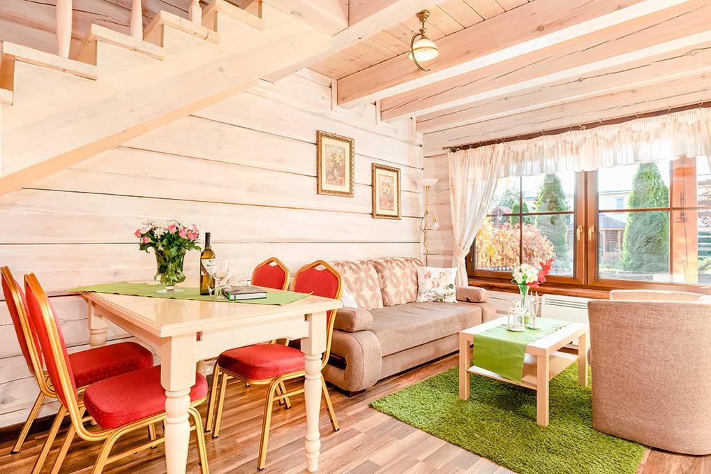 Nebenkosten: Strom nach Verbrauch (2 Zl./kWh). Endreinigung 200 Zl. Kurtaxe. Bettwäsche vorhanden. Handtücher leihbar 2 - 4 €/Aufenthalt. Zusätzliche Leistungen: Parkplatz 5 €/Tag. Kaminholz/Sack 120 L / 15 €. Kostenloser Internetzugang über W-Lan. Zusätzlicher Bettwäschewechsel 10 €/Pers. Kaution 150 €. Kinder Babybett/Hochstuhl zusätzlich zur maximalen Personenzahl, jeweils 2 €/Tag (Bestellung). Haustier 10 €/Tag (Anmeldung), max. 1 Hund.Räume & Aufteilung