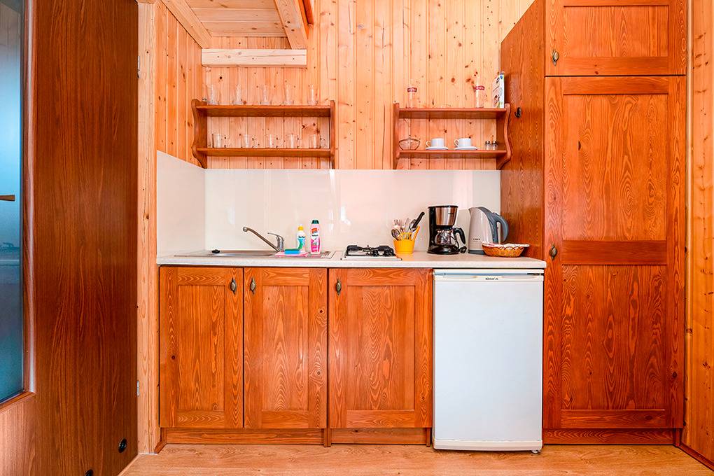 PL 50.24 Ferienhaus 2-4 Pers.: Interessant konzipiertes Ferienhaus mit ca. 25 qm Wohnfläche. Wohn-/Essraum mit Sat-TV (dt. Programme), Esstisch, Küchenzeile (Gaskocher 2 Flammen). Bad: Du, Wb, WC, Warmwasser über E-Boiler (60 l), Franz. Doppelbett und 2 versetzt darüberliegenden Etagenbetten. Terrasse mit Sitzmöbeln, Esstisch, Grill.
