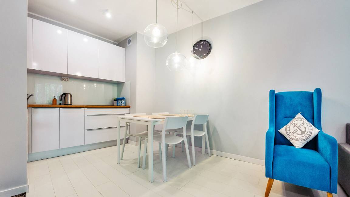Die Apartments fügen sich harmonisch in die Küstenumgebung ein. Eine große Grünfläche rund um die Anlage, Ruheplätze und ein großzügiger Kinderspielplatz schaffen eine einzigartige Atmosphäre und bilden eine Oase für Kinder. Auch aktive Menschen und Senioren finden hier einen ruhigen Rückzugsort und einen gemütlichen Ort zum Ausruhen.