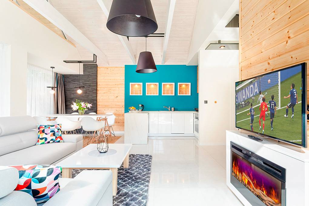 Mit viel Liebe zum Detail, maritim gestaltete, gemütliche Ferienhäuser mit moderner, freundlicher Einrichtung. Kostenloses Internet (W-Lan). Fußbodenheizung und Kühlung über Wärmepumpe, elektrischen Kamin. Warmwasser über E-Boiler (100 l). Terrasse mit Sitzmöbeln, Grill. 1 Parkplatz auf dem umzäunten Grundstück (Gebühr).