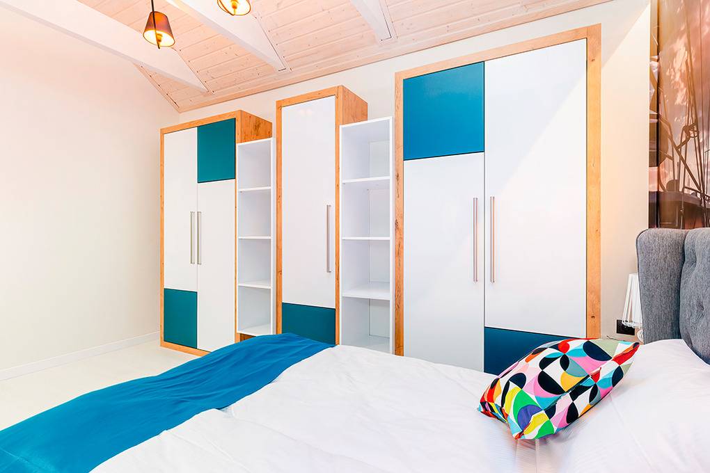 PL 50.3 Ferienhaus 2-8 Pers.: Imposantes 3-Zimmer-Reihenhaus mit 70 qm Wohnfläche. Parterre: Großzügiger, lichtdurchfluteter Wohn-/Essraum mit bodentiefen Fenstern, Sitzgarnitur (Schlafsofa 2 Pers.), Couchtisch, Flachbild Sat-TV (deutsche Programme), Esstisch, sehr gut ausgestatteter Küchenzeile (4 Pl. Induktionsherd, Mikrowelle, Abzugshaube, Backofen, Spülmaschine). Bad: Du, Wb, WC, Waschmaschine. 2 3-Bettzimmer mit Doppelbett und Schrankbett. Terrasse mit Sitzmöbeln, Grill.