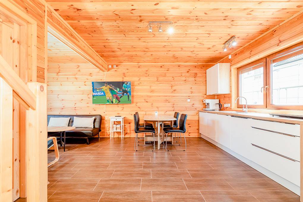 Schöne gemütliche Ferienhäuser mit Sauna und Whirlpool, 2018 neu erbaut. Moderne, freundliche Einrichtung. Zwei Badezimmer. Kostenloses Internet über W-Lan. Zentralheizung, Warmwasser über Durchlauferhitzer. Terrasse mit Sitzmöbeln, Grill, davor kleine Rasenfläche. 1 Parkplatz/Ferienhaus auf dem umzäunten Grundstück (Gebühr).