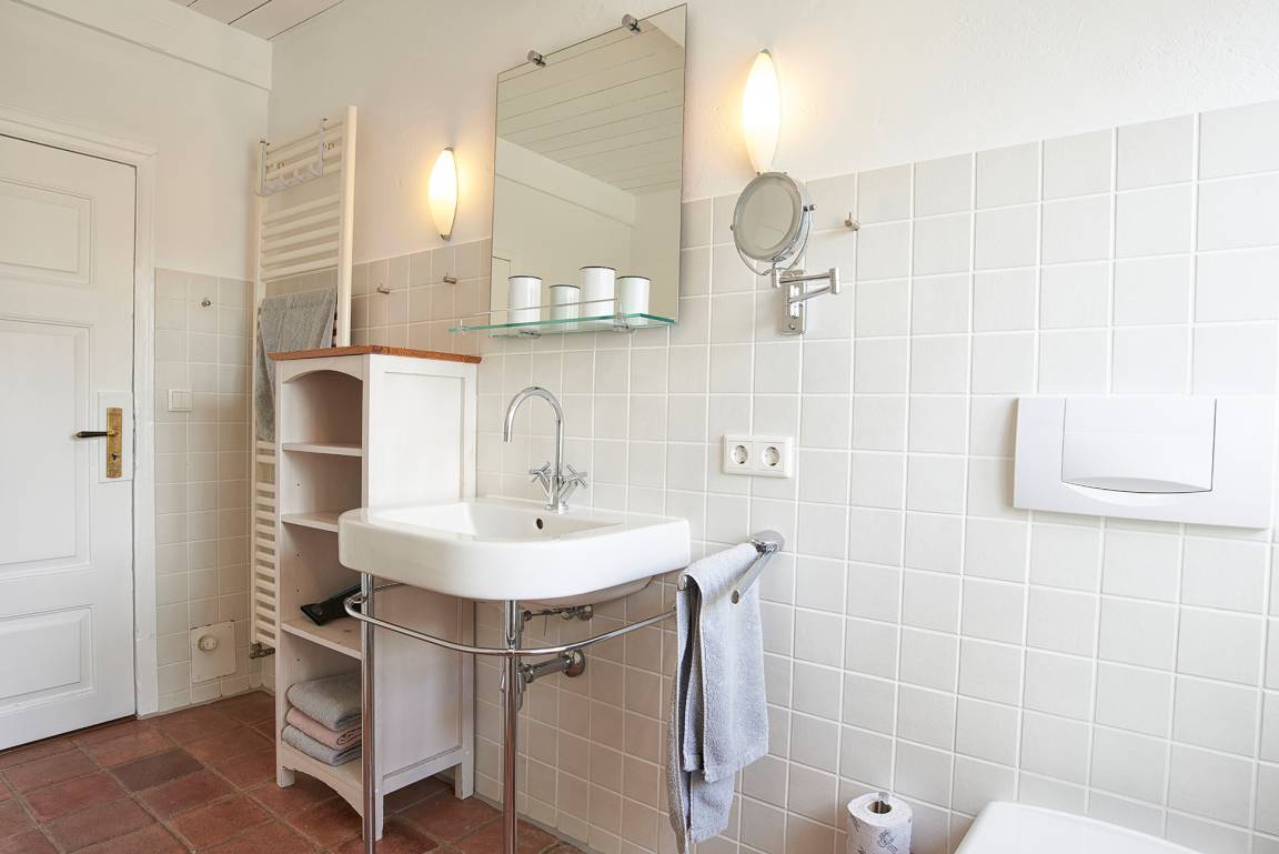 Diese wunderschöne und renovierte Ferienwohnung befindet sich im Erdgeschoss des Alten Lehrerhauses. Sie ist für ein bis vier Personen (plus Kleinkind) geeignet. Es erwartet Sie eine komplett renovierte, mit viel Liebe eingerichtete Ferienwohnung, in der auch Ihr Hund willkommen ist. In der Wohnung stehen Ihnen ein Flur mit Garderobe, ein Schlafzimmer mit Boxspringbett, ein Zimmer mit getrennten Betten, ein kombiniertes Badewannen- und Duschbad, eine neue Einbauküche, ein gemütliches Wohnzimmer und ein zusätzliches Esszimmer mit dänischem Ofen zur Verfügung. In der gut ausgestatteten Küche finden Sie unter anderem: Gespirrspülmaschine, Kaffeemaschine, Toaster, Wasserkocher, Cerankochfeld, Backofen und ein Kühlschrank mit Gefrierfach. Im Hauswirtschaftsraum, den Sie gemeinsam mit den Gästen der Ferienwohnung im Obergeschoss nutzen, steht Ihnen kostenfrei eine Waschmaschine und ein Trockner zur Verfügung. Ein Garten mit Sonnenliegen und Terrassenmöbeln rundet das Angebot ab.