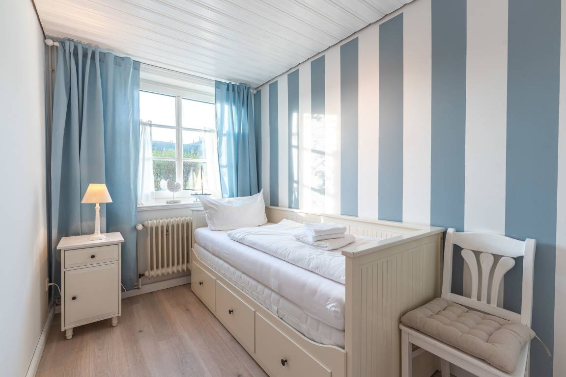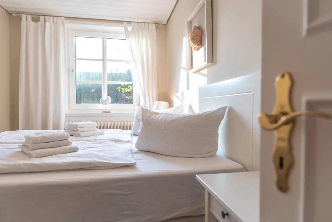 Diese schöne Dreizimmerwohnung besticht durch ihre Gemütlichkeit. Die hell gehaltenen Sandtöne und die Kombination aus gemütlichen Farben mit heller Einrichtung setzen diese Wohnung gekonnt in Szene. 2022 von Grund auf saniert und mit tollen Extras wie USB/ USB Mini Steckdosen an jedem Nachttisch, integriertem Radio im Badezimmer, hochwertigen original Tempur-Matratzen sowie einem 43 Zoll großem Fernseher ausgestattet, um Ihnen eine wunderbare Auszeit und die bestmögliche Entspannung bieten zu können. Die Wohnung verfügt über ein Doppelbett und ein Einzelbett mit ausziehbarer zusätzlicher Matratze, das sich ideal für zwei Kinder eignet. Direkt vor dieser Wohnung befindet sich ihre eigene Terrasse mit zartgrau gehaltenen Terrassenmöbeln und dem wohl besten Bäcker um die Ecke.