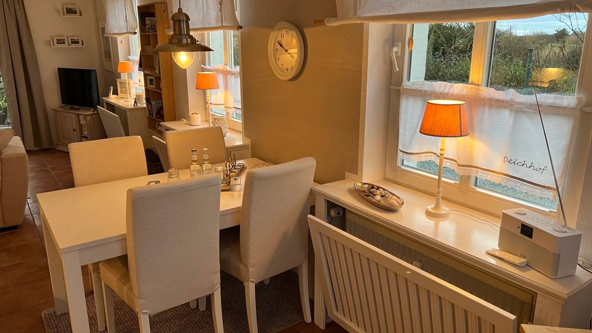 „Eine Wohnung, in der es an nichts fehlt. Sauber und gemütlich eingerichtet. Zwei Terassen mit Liegestühlen und Strandkorb, komplett eingezäunt und für Familien mit Hund bestens geeignet. 500m zum Deich mit wunderschönem Sonnenuntergang. Ein erholsamer Urlaub. Wir kommen gerne wieder“