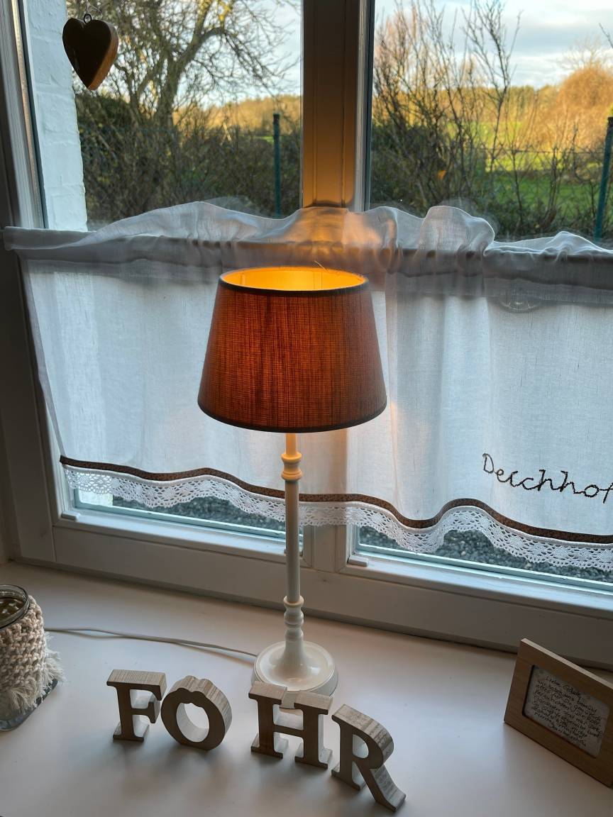 Durch die großen Fenster zu jeder Seite hin ist die Wohnung lichtdurchflutet, hell und sonnig. Von jedem Zimmer aus hat man einen wunderschönen Ausblick auf die liebevoll angelegten beiden kleinen Gärten und das großzügige Gelände des Deichhofs. Die Gärten sind komplett eingezäunt und deshalb besonders geeignet für Urlauber mit kleinen Hunden.