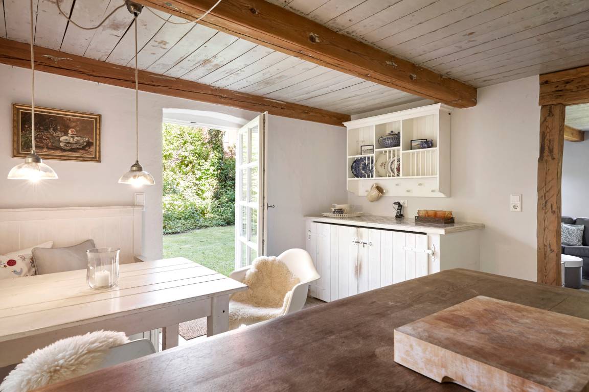 Den Augenblick einfach genießen, das kann und soll man in unserer liebevoll eingerichteten Reetdachhaushälfte. Hochwertig und komfortabel ist sie eingerichtet. Hier treffen Designklassiker auf Landhauselemente - eine unglaublich schöne und gemütliche Atmosphäre. Ob im Sommer, wenn der großzügige Garten Sie einlädt, sich von der gesunden Nordseeluft verwöhnen zu lassen. Oder im Winter vor dem Kamin, wenn der Wind ums Haus weht. Kuschelige Schlafzimmer und schöne Badezimmer lassen einen die Zeit vergessen. Die Küche ist hervorragend ausgestattet, es macht einfach Spaß hier zu kochen, zu klönen. Im malerischen Utersum liegt unser Haus nur wenige Minuten vom Strand entfernt, an dem man die schönsten Sonnenuntergänge erleben kann. Ach, mögen diese glücklichen Augenblicke nie enden.