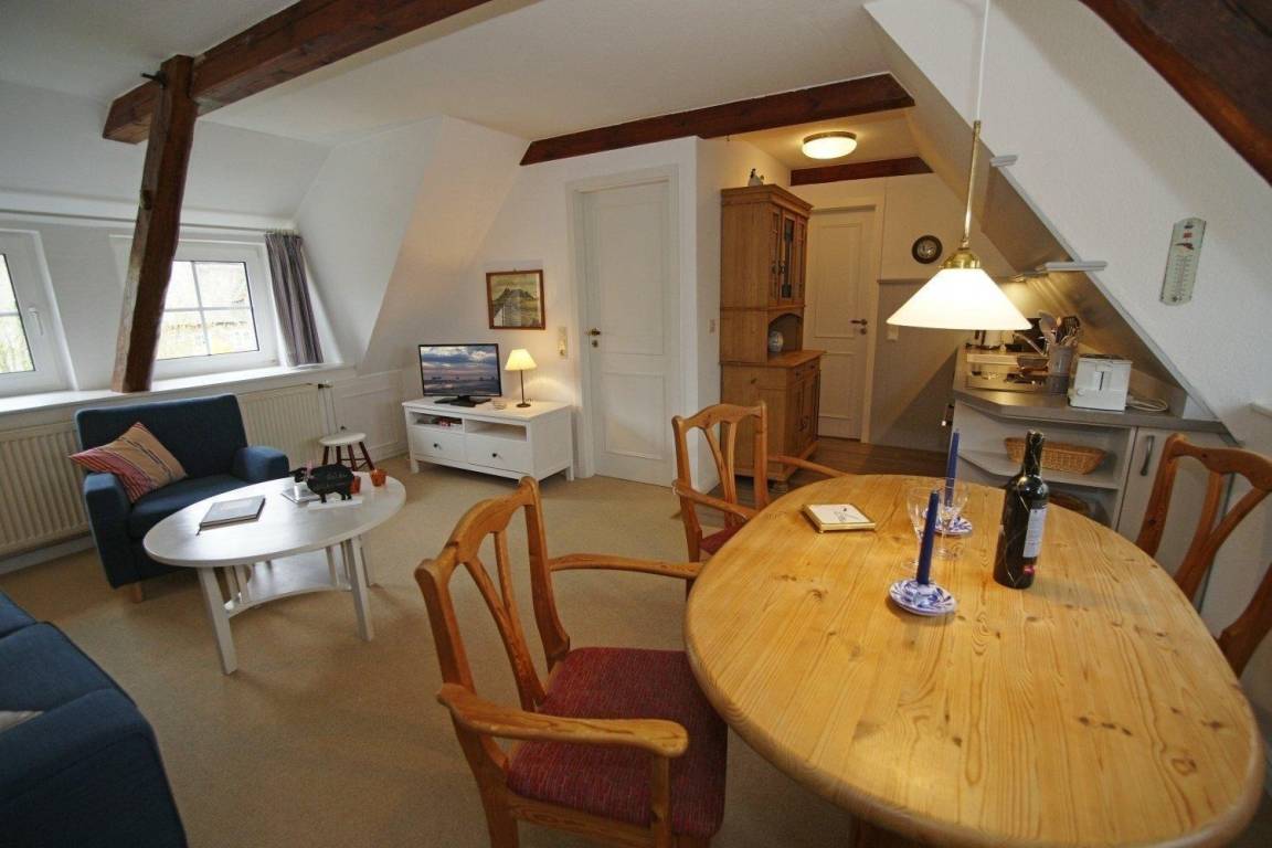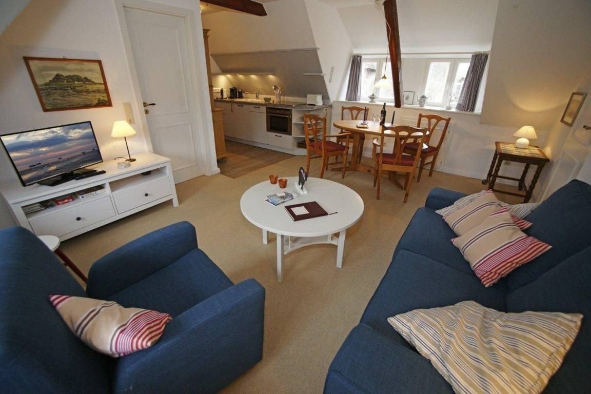 Die gemütlich eingerichtete Ferienwohnung in Utersum bietet Platz für bis zu 2 Personen und ist ideal für einen entspannten Aufenthalt. Auf 30 m² gibt es ein Wohn-/Schlafzimmer mit einem komfortablen Doppelbett (190x200 cm) und einer Sitzecke, die mit Sofa und Sessel ausgestattet ist. Ein Flachbildfernseher und kostenloses WLAN sorgen für Unterhaltungswert. Die Wohnküche beinhaltet eine komplett ausgestattete Küchenzeile mit Geschirrspüler, 4-Plattenherd, Backofen, Kühlschrank, Kaffeemaschine und Esstisch. Das helle Duschbad mit Außenfenster wurde 2020 renoviert. Die Wohnung ist ebenerdig und eignet sich gut für Allergiker und Nichtraucher. Zu den gemeinschaftlich nutzbaren Einrichtungen gehört ein Außensitzplatz vor dem Haus. Haustiere sind nicht erlaubt. Buchungen für Langzeiturlaub oder Monteure sind auf Anfrage möglich. Ein Parkplatz sowie kostenlose Handtücher werden bereitgestellt.