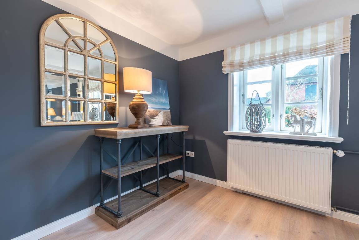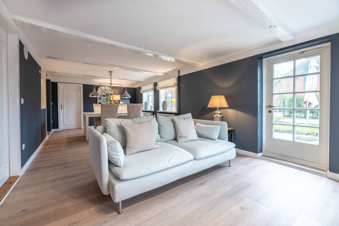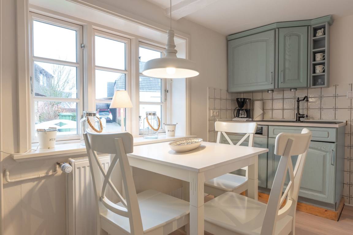 In diesem gemütlich, im nordischen Landhausstil eingerichteten Friesenhaus (ca. 75 qm), steht Ihnen ein heller geräumiger Wohn- und Essbereich mit angegliederter Küche zur Verfügung.