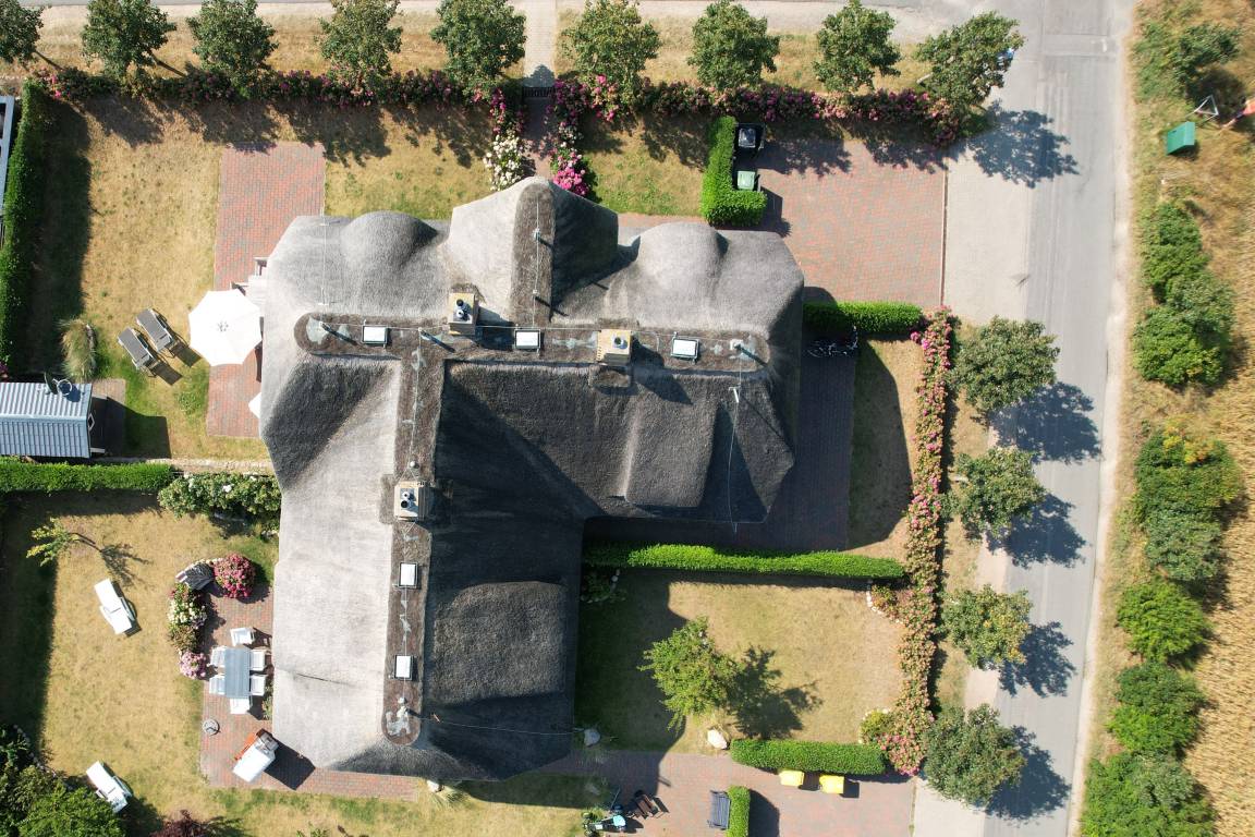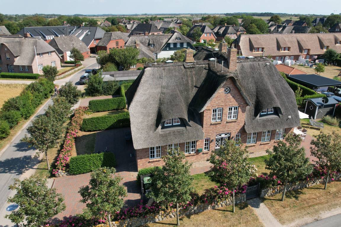 Den Strandlöper, auf Hochdeutsch "Strandläufer", können Sie wörtlich nehmen. Keine 300 Meter vom westlichen Strand entfernt wartet dieses neu gebaute Traumhaus auf Sie. Ganz im Stil traditioneller Reetdachhäuser strahlt es die Gemütlichkeit der guten alten Zeit aus. Eine hochwertige Ausstattung mit liebevollen Details und viel Platz zum Relaxen erwartet Sie und Ihre Familie. Die Räume sind so großzügig und praktisch geschnitten, dass nicht nur die Kinder, sondern auch noch Oma, Opa und der Hund Platz finden. Schon beim Frühstück auf der großen Terrasse die Meeresluft spüren - das ist Urlaub. Zum Abschluss eines erholsamen Tages gibt es den wohl schönsten Sonnenuntergang Deutschlands direkt am Strand von Utersum.
