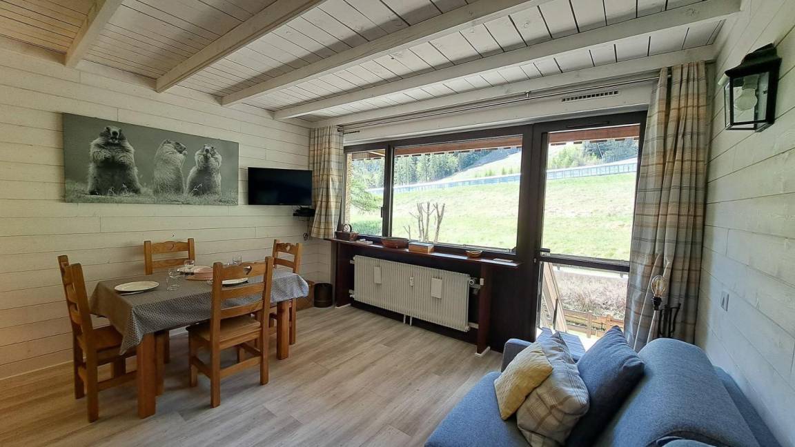 Die Residenz Carlines ist ideal gelegen. Vom Wohnzimmerfenster aus können Sie Ihre Kinder am Sorbiers-Hang spielen sehen. Die nach Süden ausgerichtete Terrasse mit ihren Möbeln ermöglicht Ihnen optimale Entspannung zwischen 2 Wanderungen. Fläche von ungefähr 60 m². Erdgeschoss. Orientierung : Süd. Niveau 0 : Wohnzimmer mit Klappschlafcouch (140). Kochnische mit Fonduegerät, Raclettegerät, Kaffeemaschine (Nespresso), Backofen, Geschirrspülmaschine, Mikrowellenherd, 2 Induktionsherdplatten. Badezimmer mit Badewanne, WC. Terrasse. Waschmaschine, Wäschetrockner. Niveau -1 : Schlafzimmer mit Doppelbett (140). Schlafzimmer mit 2 Stockbetten (90). Badezimmer mit italienische Duschkabine, WC. Die oberen Betten sind nicht für Kinder unter 6 Jahren geeignet.