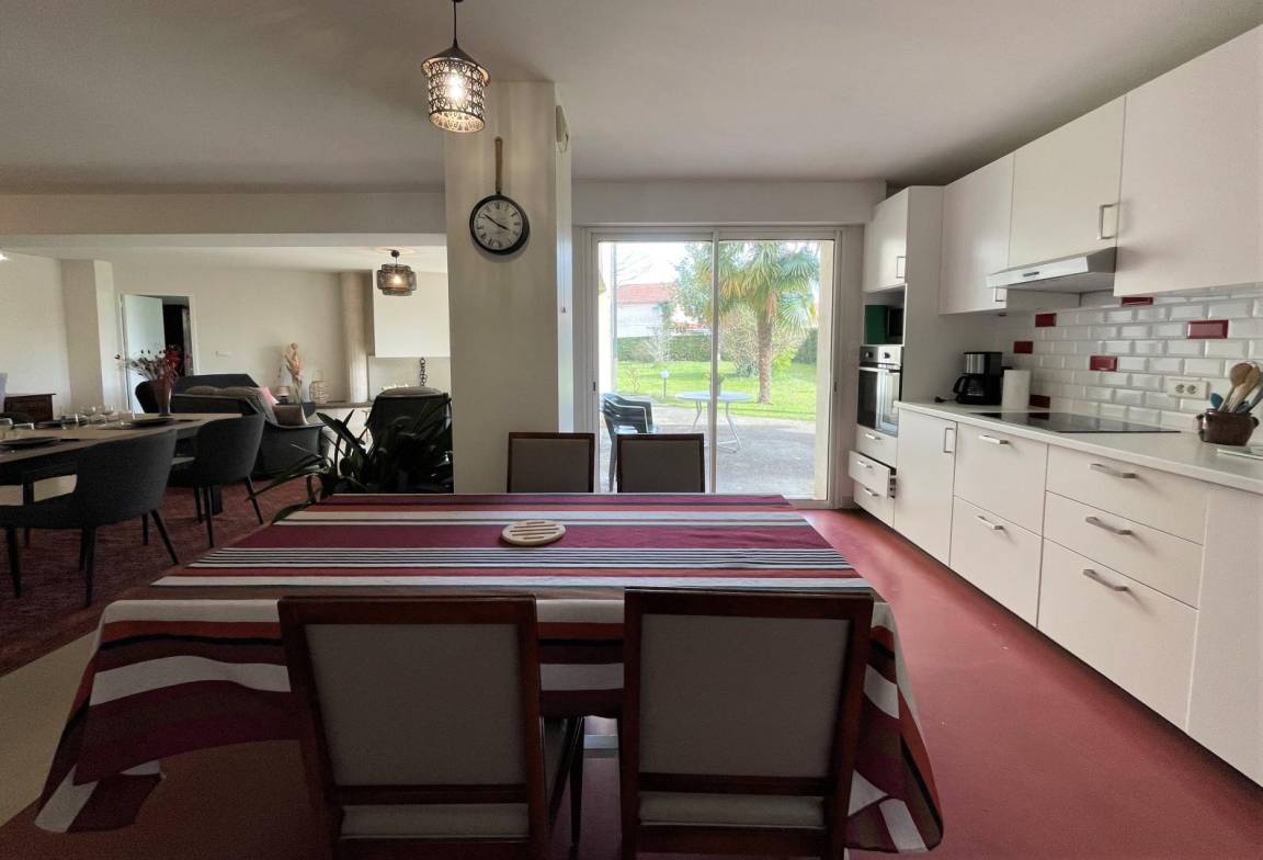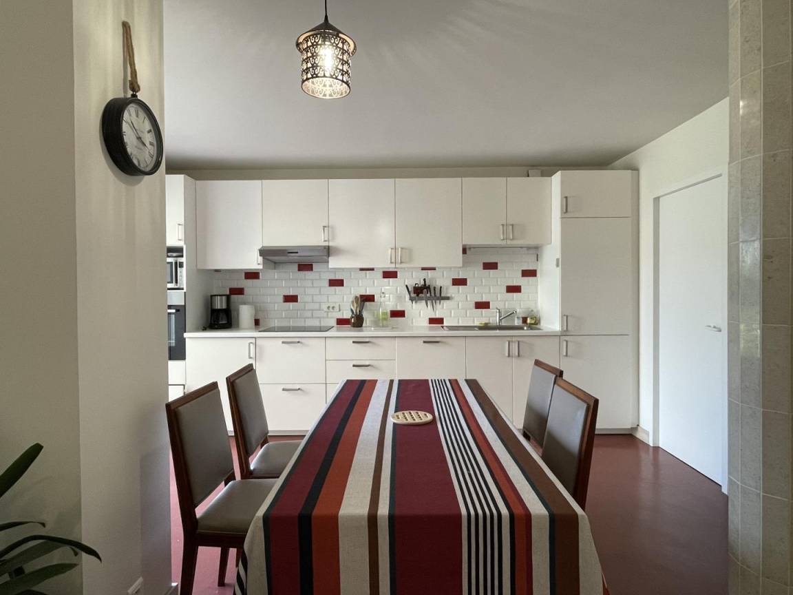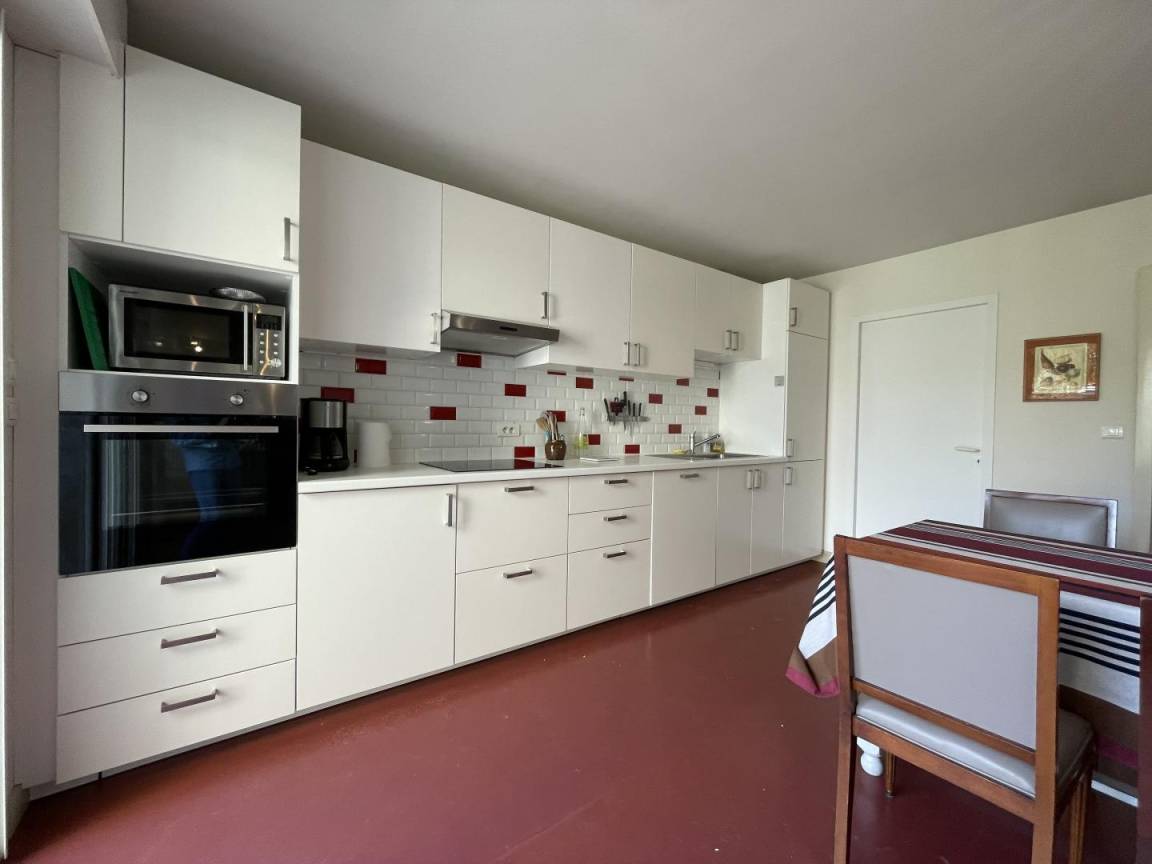 Ausgestattete Küche (Cerankochfeld, Elektroherd, Mikrowelle, Geschirrspüler, Kühl-Gefrierkombination) mit Zugang zur Terrasse.