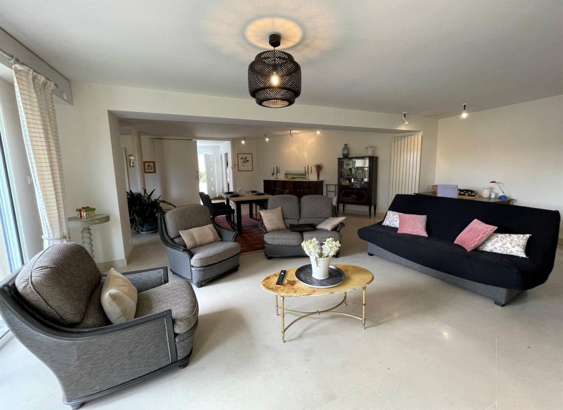 Großer Aufenthaltsraum von 50 m², bestehend aus Esszimmer und Wohnzimmer (TV, Schlafsofa).