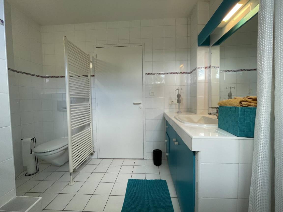 1 Schlafzimmer (1 Doppelbett), angrenzendes Duschbad (italienische Dusche, Waschbecken, WC).