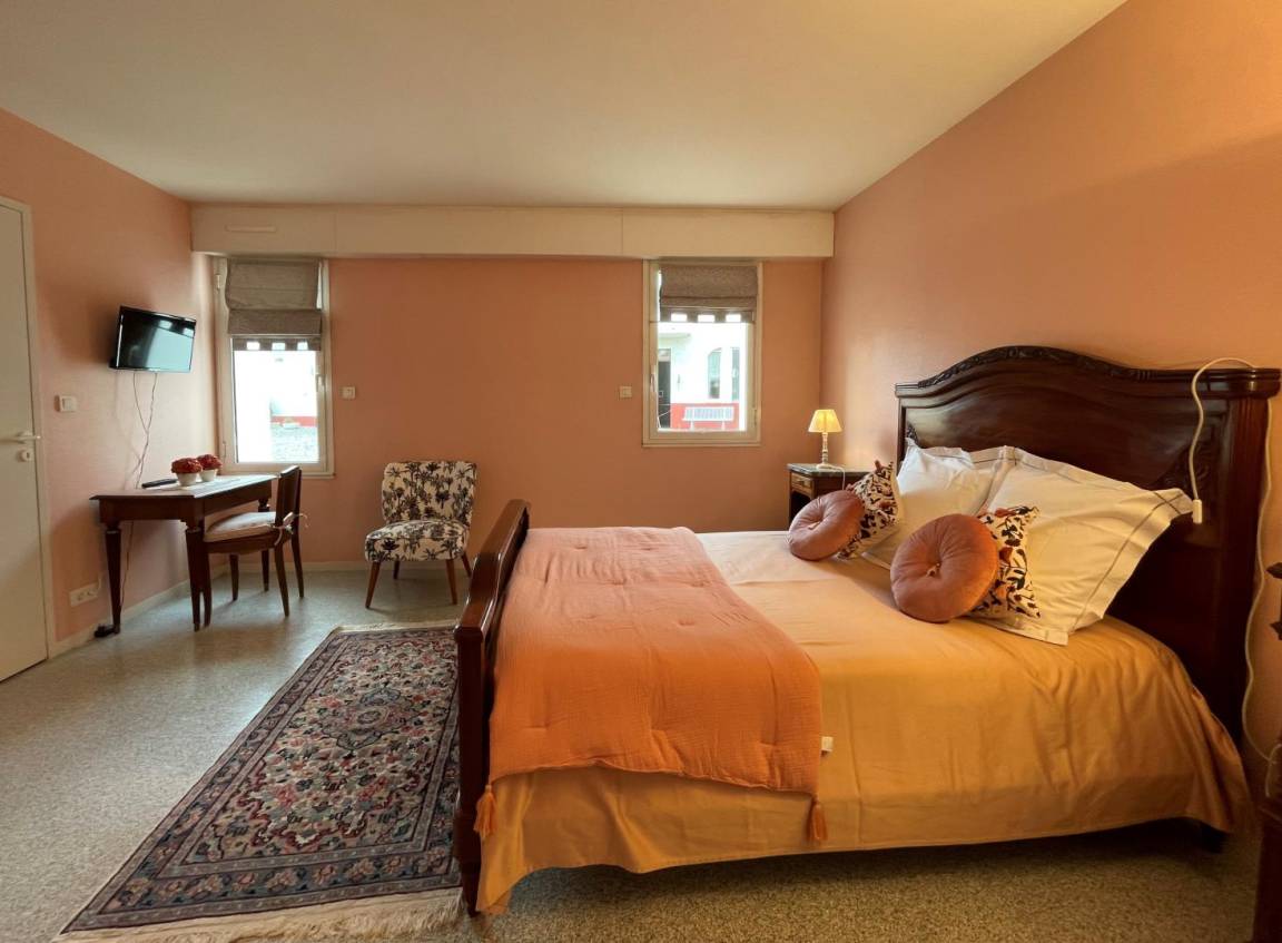 „Accueil au top et hôtes au petit soin. Le logement est un RDC chouette, non fumeur, avec un immense séjour, terrasse et un très grand jardin agréable. Les chambres avec chacunes leurs SDB ont de beaux volumes. Nous y reviendrons avec plaisir.“