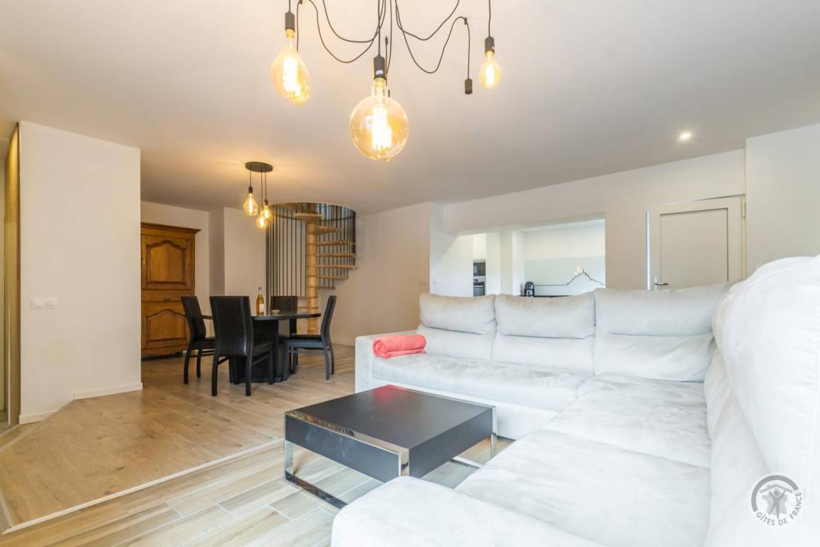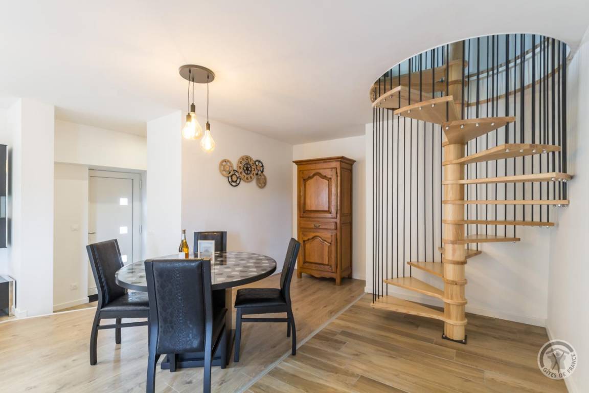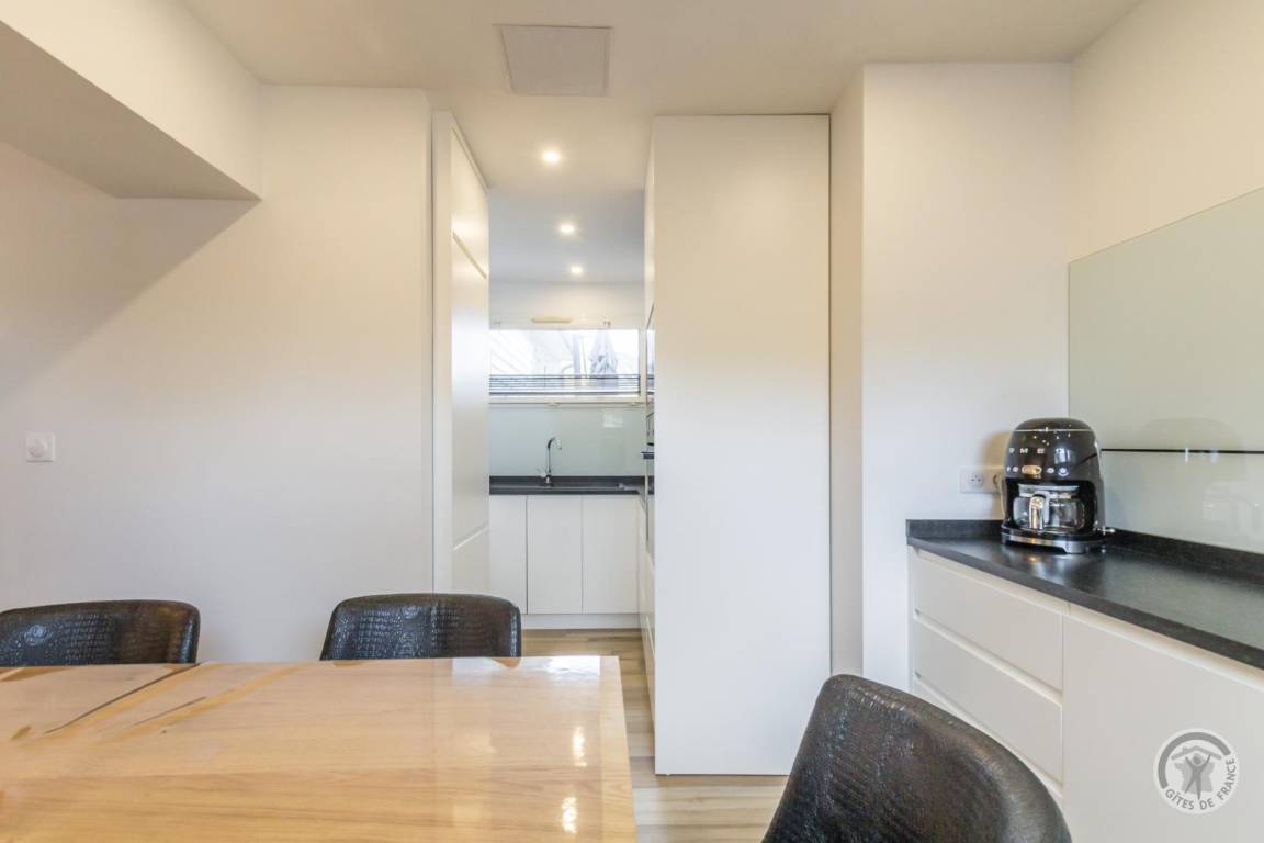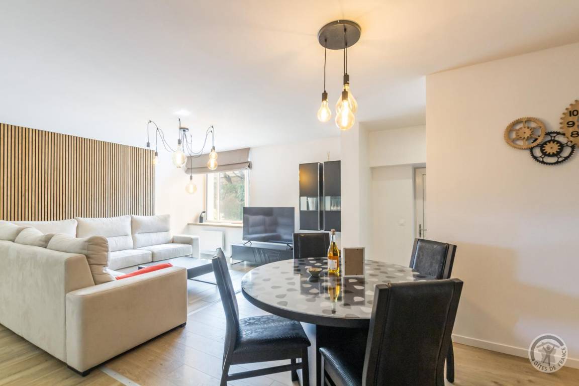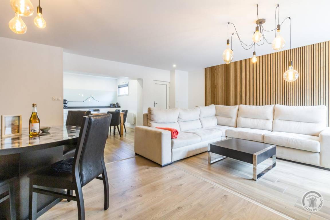 „Il est vrai que le gîte a ete entièrement refait avec modernité et aux couleurs neutres cependant pour tout produit ménager nous avons ue un peu de produit vaisselle et une pastille pour le lave vaisselle, c est un peu juste pour le ménage (avons acheté lingettes nettoyante pour nous dépanner). Nous sommes arrivés à 20h nous comprenons qu un accueil physique soit compliqué, nous aurions tout de même apprécié de rencontrer physiquement les propriétaires comme dans tous les autres gîtes que nous avions fait auparavant. le principe de boîte à clé et accompte versé directement sur le site (avons proposé de faire un cheque mais le propriétaire a refusé car pas dispo a notre arrivé) sans qu à notre départ les propriétaires viennent valider l état des lieux est vraiment limite à notre goût. Séjour mitigé la modernité ne fait pas tout...“