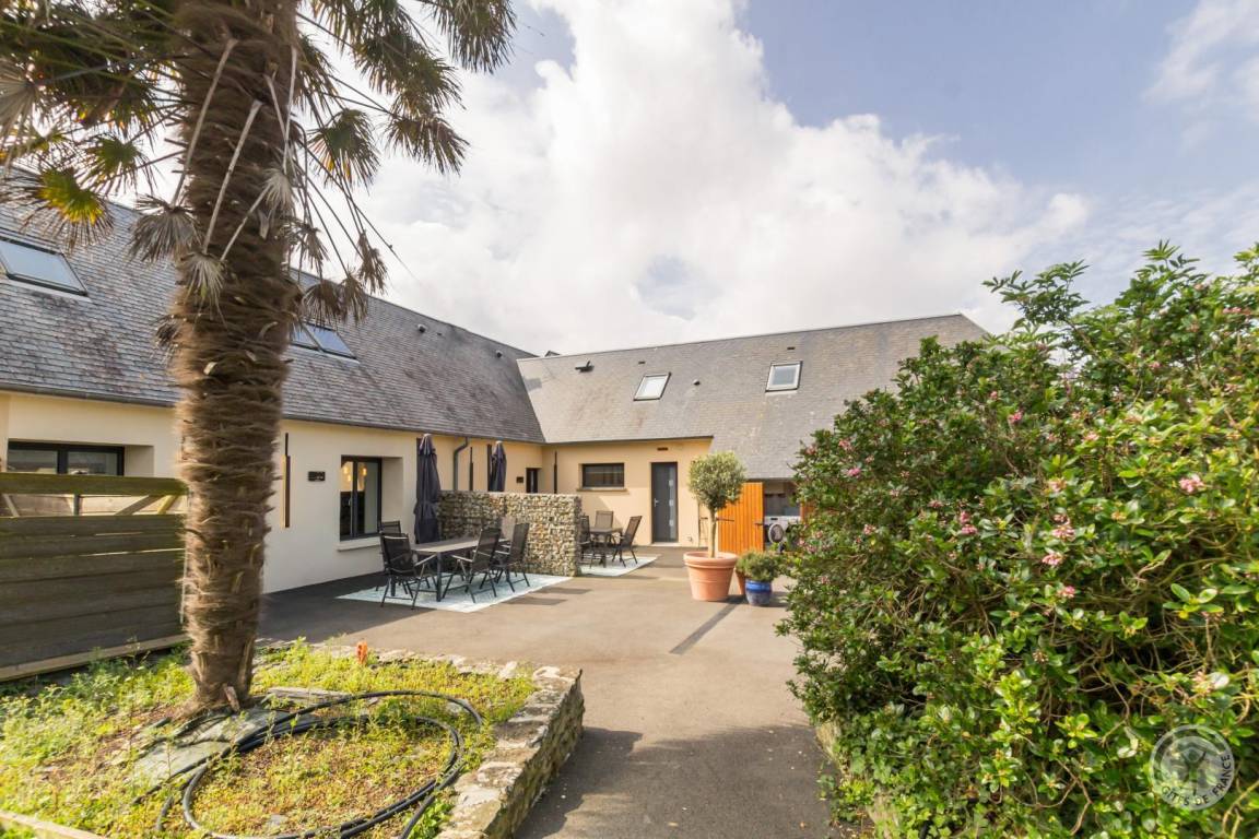 Haus, das an eine andere Mietwohnung angrenzt. Wohnzimmer, ausziehbares Sofa (WLAN-Internet, Flachbildfernseher). Zum Wohnzimmer offene Küche (Backofen, Induktionskochfeld, Mikrowelle, Kühlschrank mit Gefrierfach, Geschirrspüler). Unabhängige Toilette. Im Obergeschoss: Schlafzimmer im Zwischengeschoss (Bett 160 x 200) mit Spa und Badezimmer. Blick vom Zimmer auf den Mont St-Michel. Babyausstattung auf Anfrage. Bettwäsche und Handtücher können gemietet werden. Reinigungsservice extra. Elektroheizung inklusive. ALLES INKLUSIVE. Gemeinsamer umzäunter Garten mit Ruhebereichen. Gemeinsamer Waschraum mit den anderen Gîtes (Waschmaschine, Trockner). Grill. Privater Parkplatz.