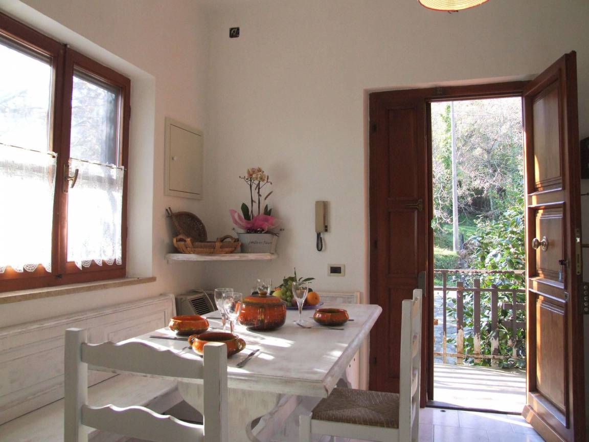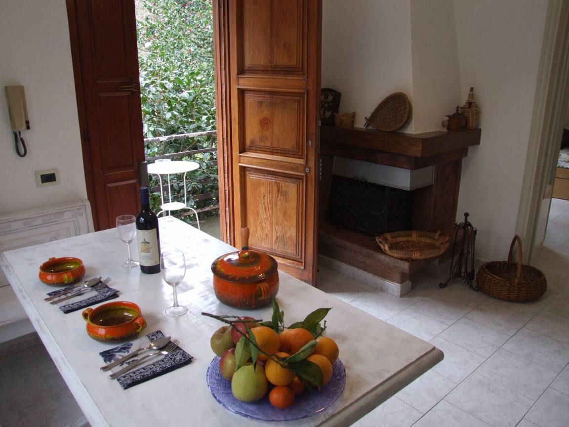 Wohnküche: gut ausgestattete Küche, Esstisch (Personen: 6), Spülmaschine, Kühlschrank, Tiefkühler, Herd, Ofen, Toaster, Italienische Kaffeemaschine, Amerikanische Kaffeemaschine, Kamin, WiFi Internet, Fliegengitter, Ausgang auf den Balkon.