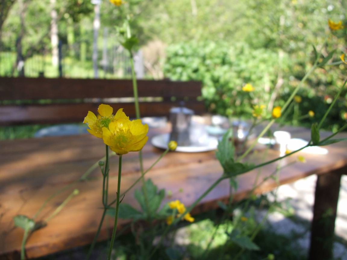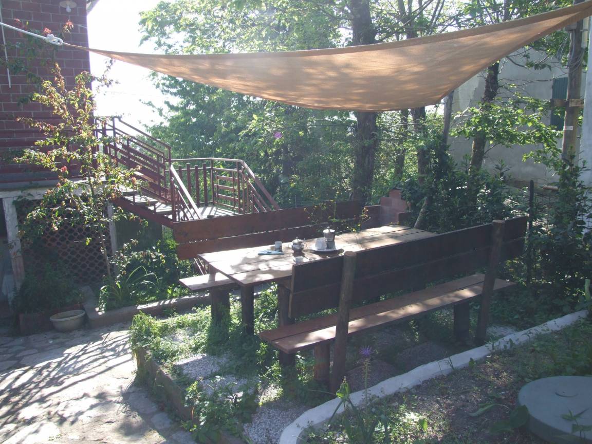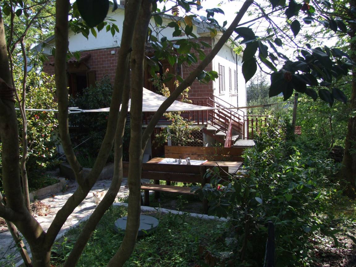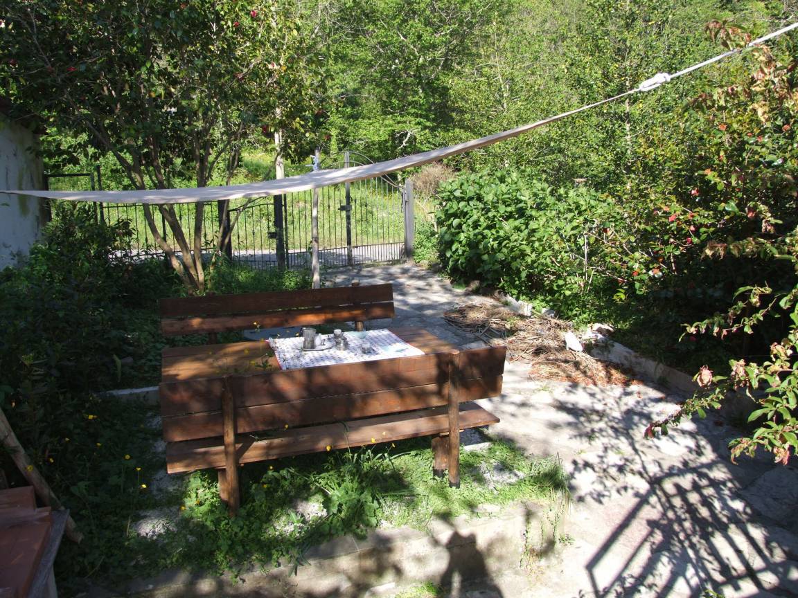 Garten: WiFi Internet, Grill, Außenbereich für das Essen im Freien, Esstisch, zwei Sonnenliegen.