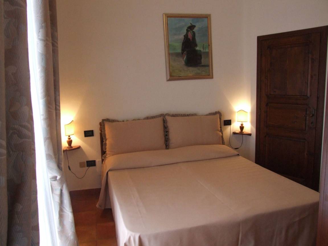 Schlafzimmer mit Bad 2: Doppelbett, Einzelbett, WiFi Internet, Waschbecken, Bidet, Dusche, Fön, Ausgang auf den Balkon.