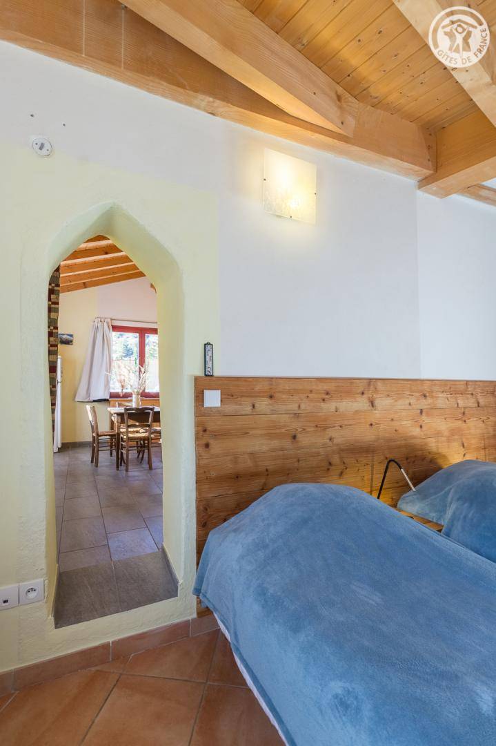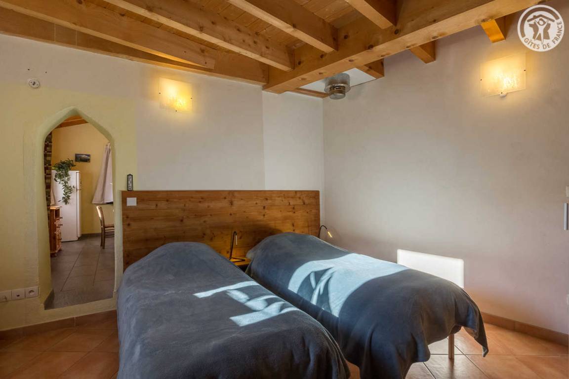 Gite im Erdgeschoss des Hauses des Eigentümers. Level und unabhängiger Zugang: Wohnzimmer-Küche Lounge - Bereich (1 Rapido Express Schlafsofa für 2 Personen), ein Schlafzimmer (geschlossen durch einen Vorhang und ein Schritt Schritt über) mit 2 Einzelbetten 80 x 190 cm, ein Badezimmer ‚Wasser (Dusche und WC). Privater Außenbereich.