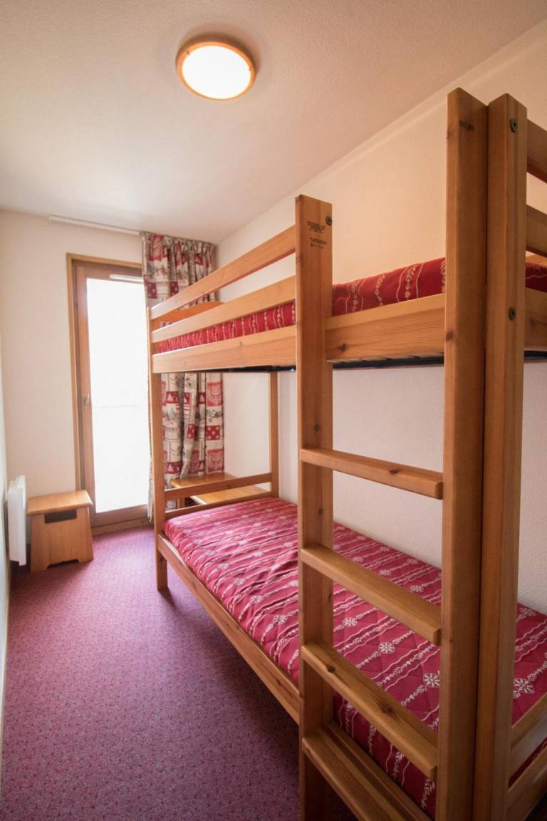 Die Residenz Le Bonheur des Pistes*** besteht aus zwei Chalets, die aus traditionellen Materialien, Stein und Holz, mit einem Dach aus Steinplatten aus der Region gebaut wurden, wodurch sie sich perfekt in die unberührte Alpenlandschaft des Val Cenis einfügt. Sie bietet einen wirklich herrlichen Panoramablick auf das Vanoise-Gebirge, einschließlich seines höchsten Gipfels: der Dent Parachée (der gezackte Zahn). Die Residenz bietet Ihnen 70 voll ausgestattete und komfortable Apartments auf 4 Etagen (mit Aufzügen). Alle Apartments sind gemütlich mit Kiefernmöbeln im Bergstil eingerichtet und verfügen über einen Fernseher, eine Küche mit Mikrowelle/Grill, Geschirrspüler, 4 Elektrokochplatten und einen Balkon. Fläche von ungefähr 34 m². 1te Etage. Orientierung : Ost, Süd. Blick skipisten. Wohnzimmer mit Klappschlafcouch für 1 Person. Schlafzimmer mit Doppelbett. Schlafzimmer mit 2 Stockbetten. Kochnische mit Kaffeemaschine, Mikrowellengrill, Geschirrspülmaschine, 4 elektronische Herdplatten, Kühlschrank. separates WC. Waschräume mit Dusche, Waschbecken. Terrasse. Die oberen Betten sind nicht für Kinder unter 6 Jahren geeignet.