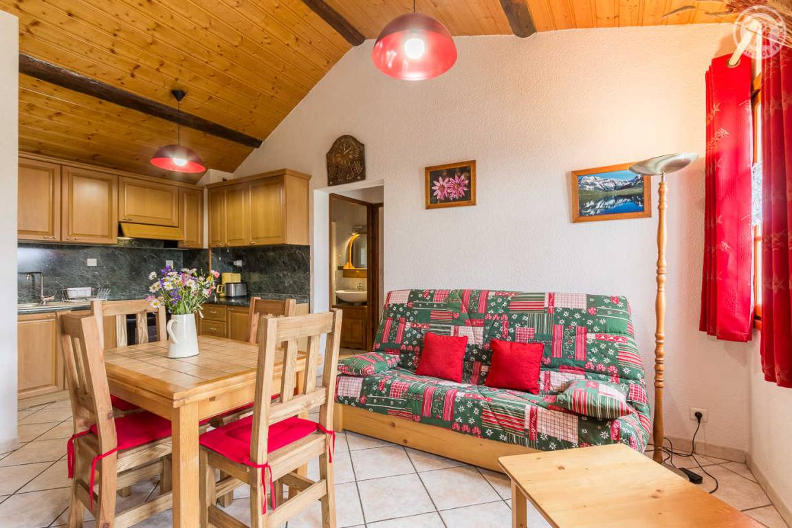 2 Gîtes in einem Reihenhaus. 1. Etage: Wohnzimmer mit integriertem Küchenbereich, (1 Schlafcouch für 1 Person), 2 Schlafzimmer (1 Doppelbett/ 2 Etagenbetten für 1 Person + 1 ausziehbares Einzelbett), Duschbad (Dusche und WC). Eigene Terrasse im Erdgeschoss mit Gartenmöbeln, Boden, Schaukel. Ski Aussois. Skibus nach Aussois.
