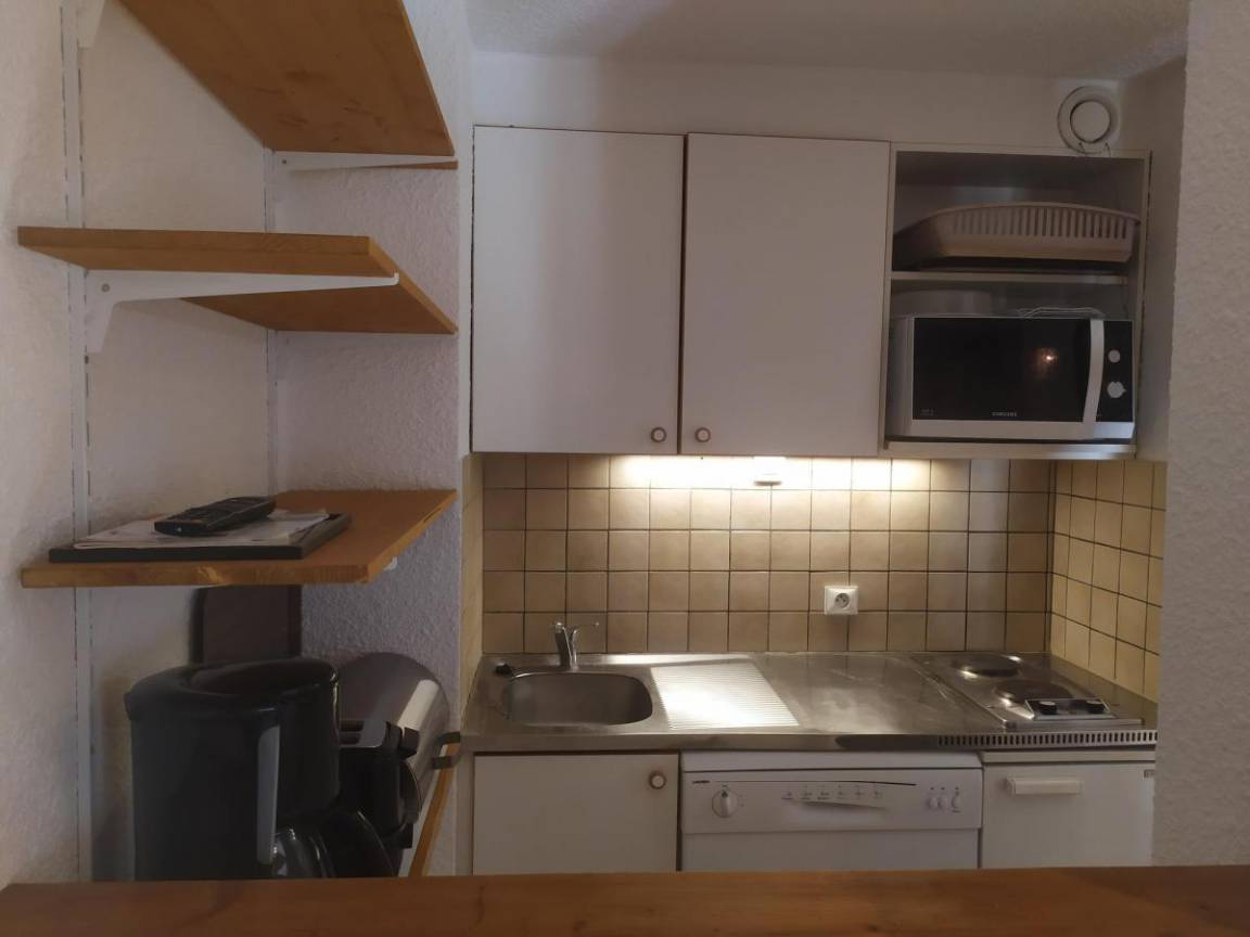 Fläche von ungefähr 49 m². 3te Etage. Orientierung : Süd, West. Niveau 0 : Wohnzimmer mit Klappschlafcouch (160). Kochnische mit Backofen, Geschirrspülmaschine, 2 elektronische Herdplatten, Kühlschrank. Badezimmer mit Badewanne, Waschbecken. separates WC. Balkon. Niveau 1 : Zwischengeschoss mit Einzelbett. offener Schlafbereich mit Doppelbett (140). offener Schlafbereich mit 2 Einzelbetten. Waschräume mit Dusche, Waschmaschine, WC.