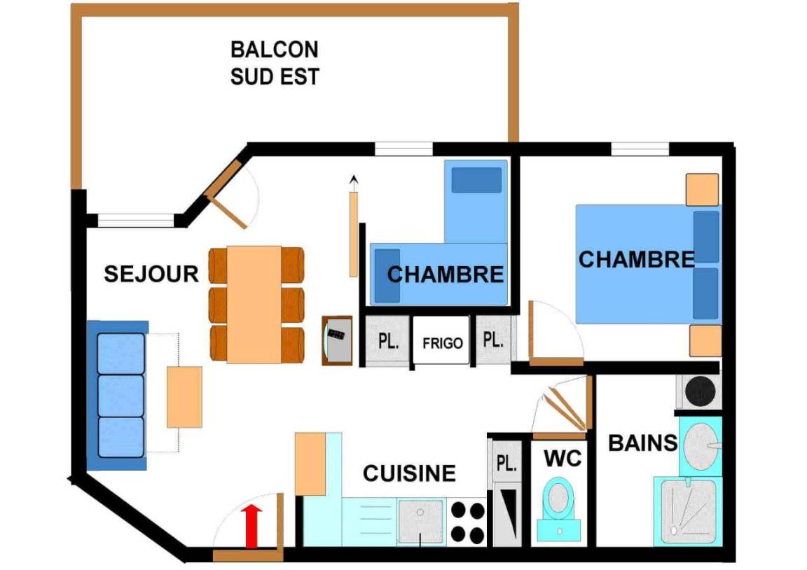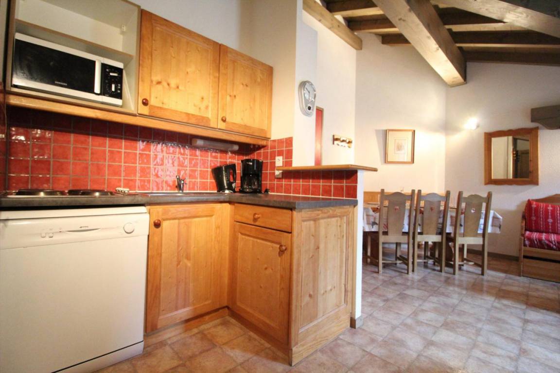 Die Residenz Le Bonheur des Pistes*** besteht aus zwei Chalets, die aus traditionellen Materialien, Stein und Holz, mit einem Dach aus Steinplatten aus der Region gebaut wurden, wodurch sie sich perfekt in die unberührte Alpenlandschaft des Val Cenis einfügt. Sie bietet einen wirklich herrlichen Panoramablick auf das Vanoise-Gebirge, einschließlich seines höchsten Gipfels: der Dent Parachée (der gezackte Zahn). Die Residenz bietet Ihnen 70 voll ausgestattete und komfortable Apartments auf 4 Etagen (mit Aufzügen). Alle Apartments sind gemütlich mit Kiefernmöbeln im Bergstil eingerichtet und verfügen über einen Fernseher, eine Küche mit Mikrowelle/Grill, Geschirrspüler, 4 Elektrokochplatten und einen Balkon. Fläche von ungefähr 38 m². 4te Etage. Orientierung : Ost, Süd-Ost, Süd. Wohnzimmer mit Ausziehschlafcouch für 2 Personen. Schlafzimmer mit Doppelbett. Schlafzimmer mit einfaches Mezzanine Bett, Einzelbett. Kochnische mit Kaffeemaschine, Mikrowellengrill, Geschirrspülmaschine, 4 elektronische Herdplatten, Kühlschrank. Waschräume mit Dusche, Waschbecken. separates WC. Balkon.