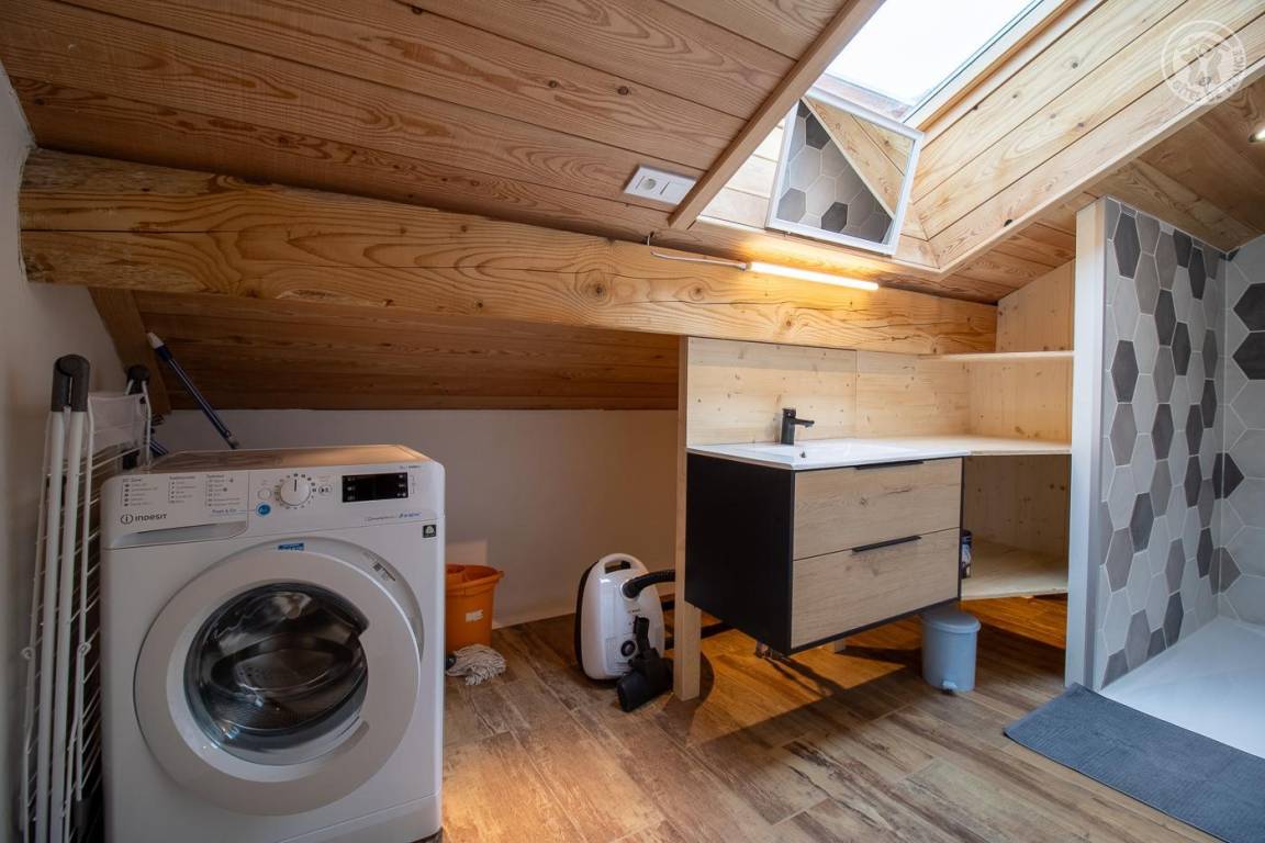 „Accueil soigné et attentionné (jusqu’au dégagement quotidien de la neige de l’allée porte-rue!), grande disponibilité à chacune de nos sollicitations (avant et pendant le séjour), discrétion et respect. Gite très calme. Situation parfaite: Magasins à 3 min à pied, remontées 3min en voiture. Tout était très propre et récent. Beau matériel de cuisine. Ponctuellement odeur d’égout dans la salle de bain. Matelas plutôt fermes (on aime ou pas), lits un peu courts pour des personnes 1,80m ou plus. Chambre des 2 lits séparés avec poutre (cfr annonce), sans doute mieux pour des enfants (nous étions 4 adultes).“