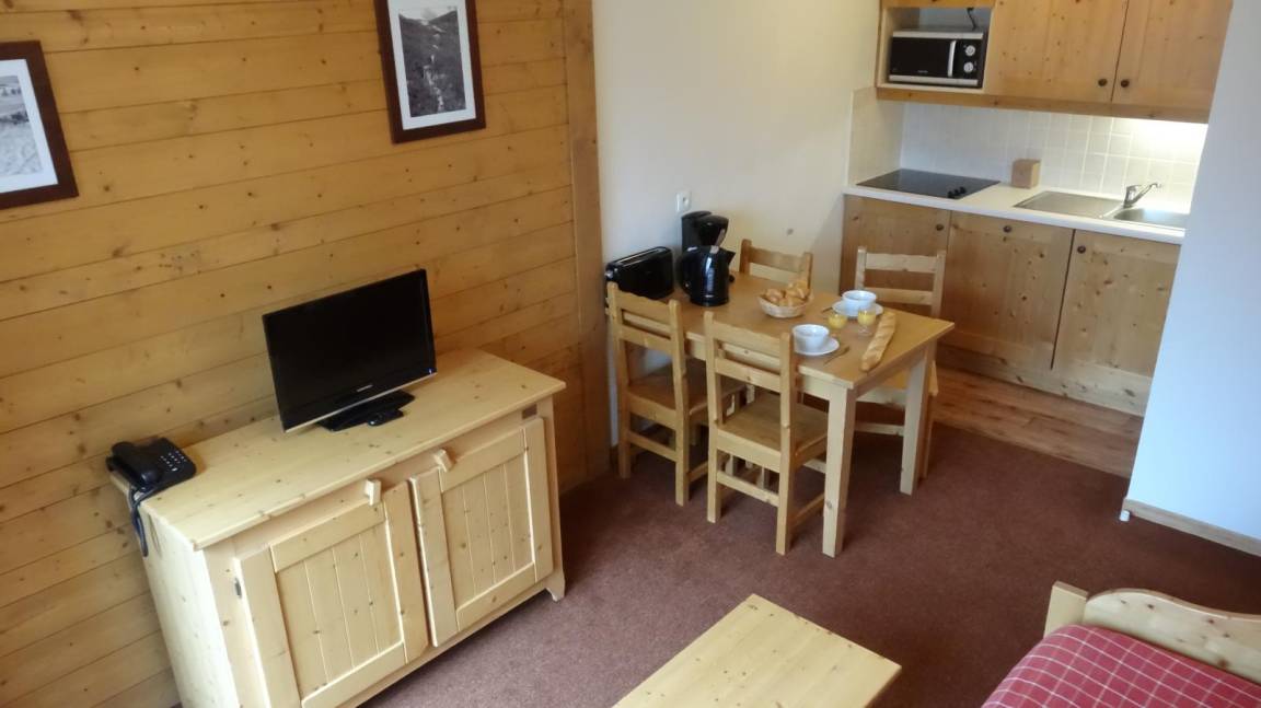 Fläche von ungefähr 35-40 m². Wohnzimmer mit Ausziehschlafcouch für 2 Personen (2 couchages individuels). Schlafzimmer mit Doppelbett (160). offener Schlafbereich mit 2 Stockbetten. Kochnische mit Wasserkocher, Kaffeemaschine (à filtre), Backofen, Mikrowellengrill, Toaster, Geschirrspülmaschine, 4 Glaskeramikkochfelder, Kühlschrank. Badezimmer mit Badewanne, Haartrockner. separates WC. Balkon ODER Terrasse. Die oberen Betten sind nicht für Kinder unter 6 Jahren geeignet.