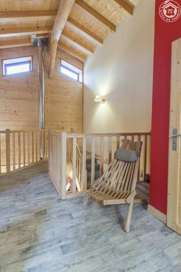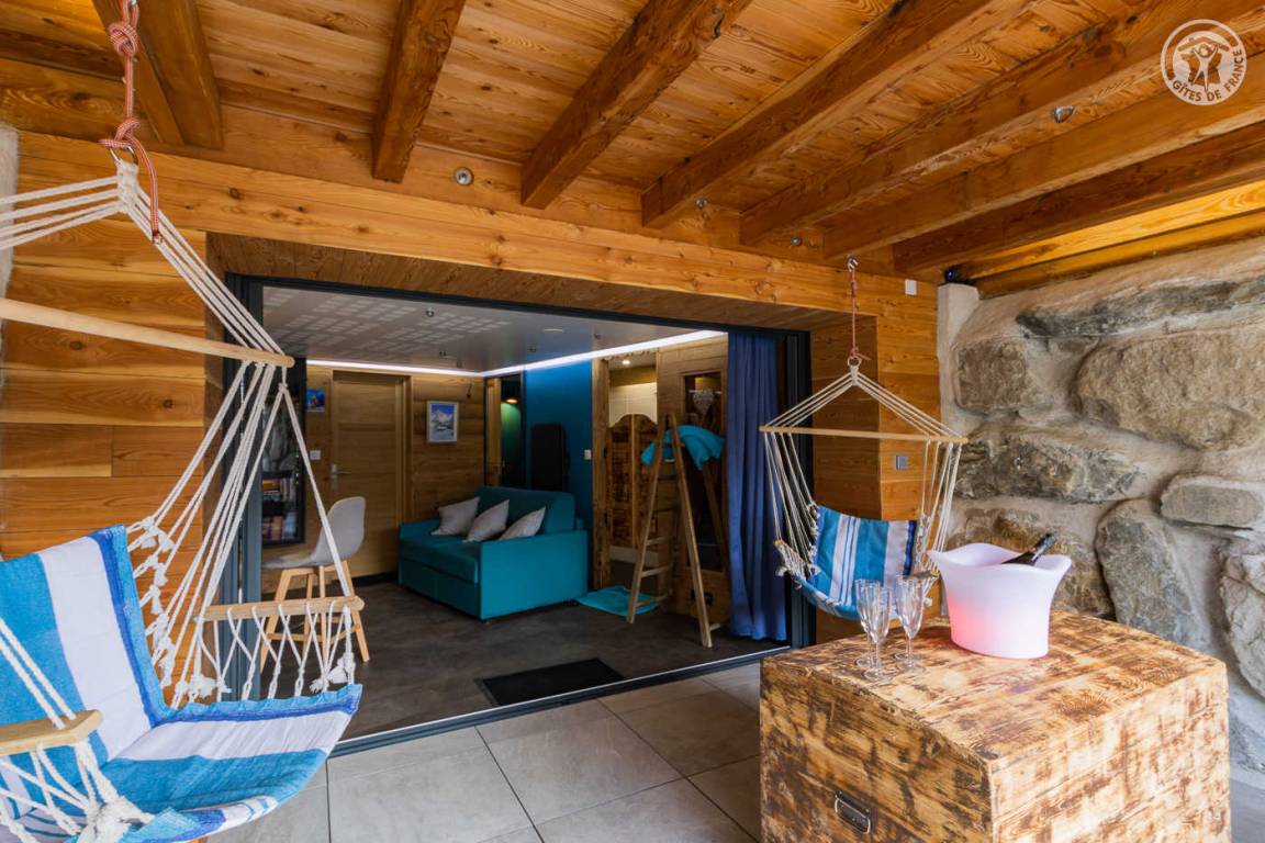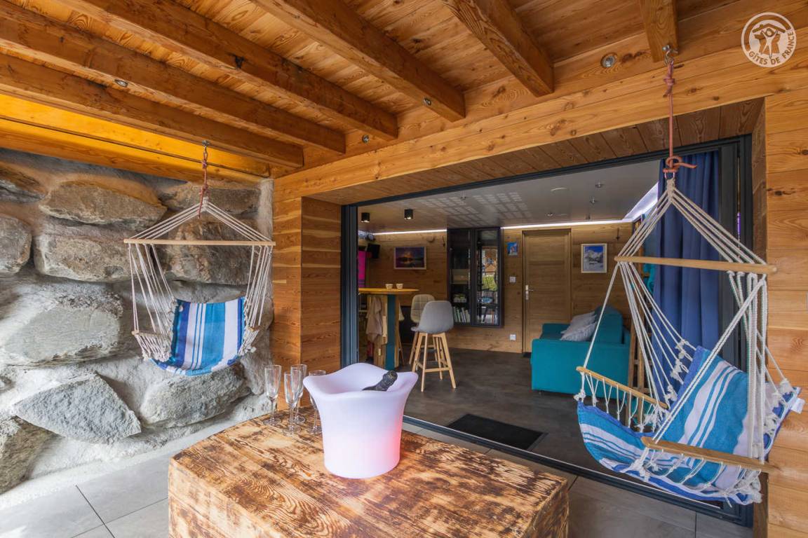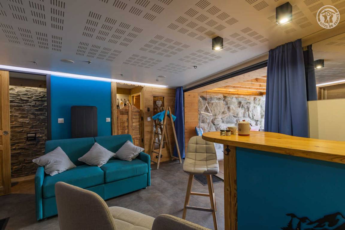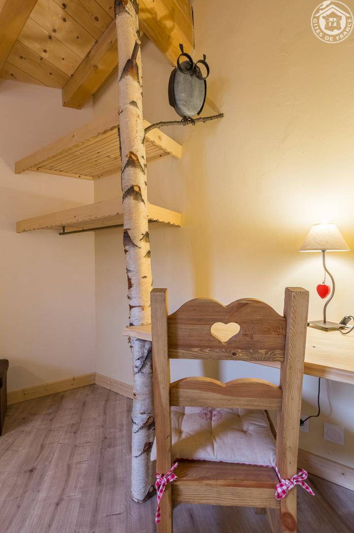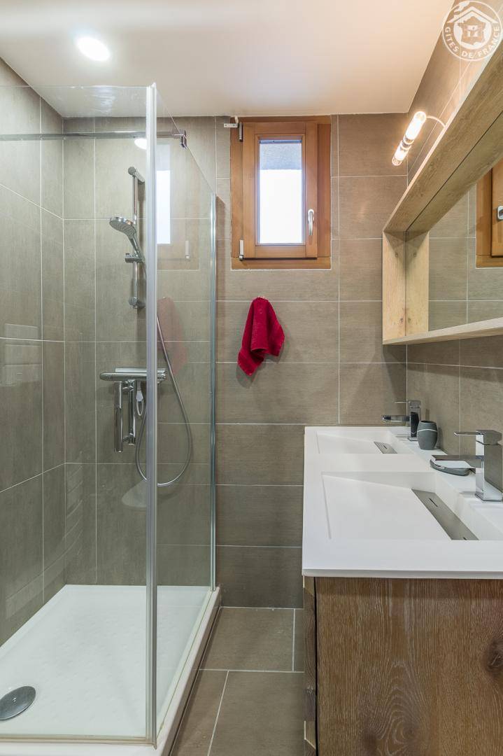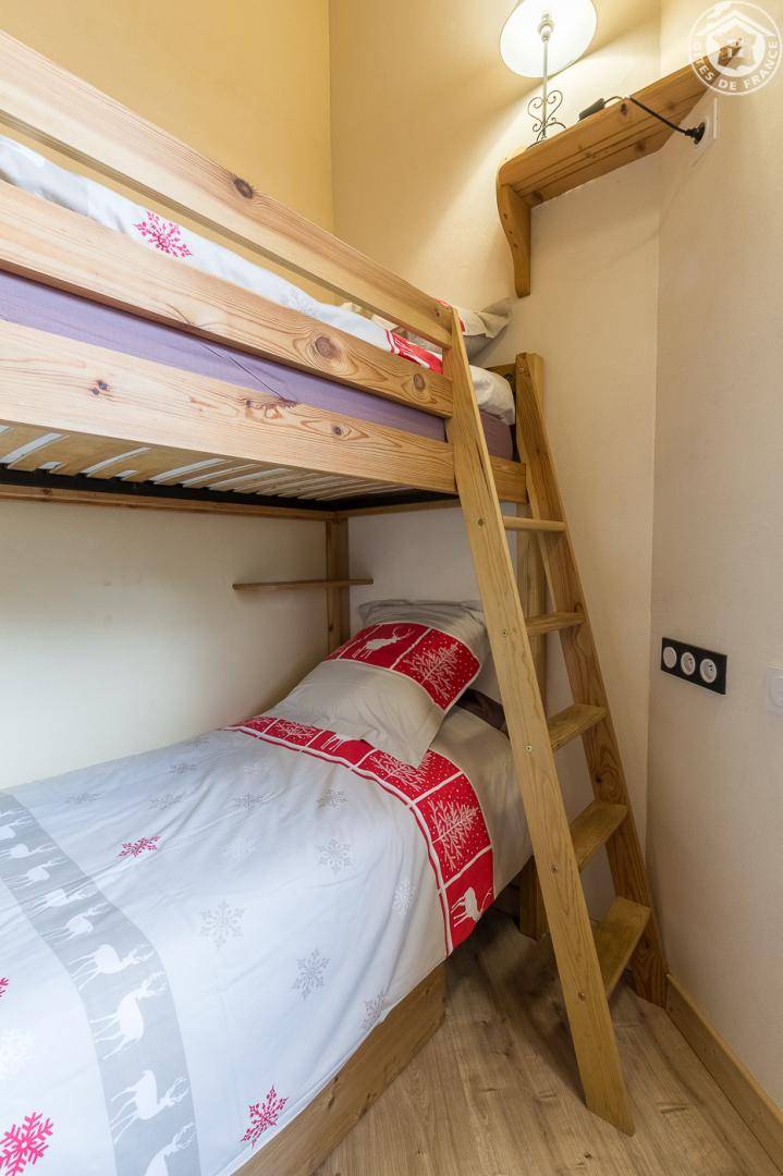 Gîte in einem Haus mit 1 weiteren Gîte für 6 Personen. Gemeinsamer Eingang. Erdgeschoss: Wohnküche mit Holzofen (Holz inklusive), 1 Schlafzimmer für 2 Personen (1 160 x 200 cm großes Bett). Badezimmer (Dusche + WC) zugänglich für Personen mit eingeschränkter Mobilität. Erster Stock: 2 Schlafzimmer (4 Etagenbetten / 1 Doppelbett). Duschraum (integriertes WC) + separates WC. Private Terrasse mit Blick auf das Tal. Waschmaschine und Trockner befinden sich im gemeinsamen Waschraum. Privater Skiraum + elektrischer Schuhtrockner. Fahrradkeller. Rodeln möglich. Gemeinsamer Wellnessbereich gegen Aufpreis und nach Reservierung mit Sauna, Bar, Heimkino und ausgestatteter überdachter Terrasse (kontaktieren Sie die Eigentümer). Ladesteckdose für Elektrofahrzeuge (Ladegebühr). Vermietung Sonntag - Sonntag in der Hochwintersaison