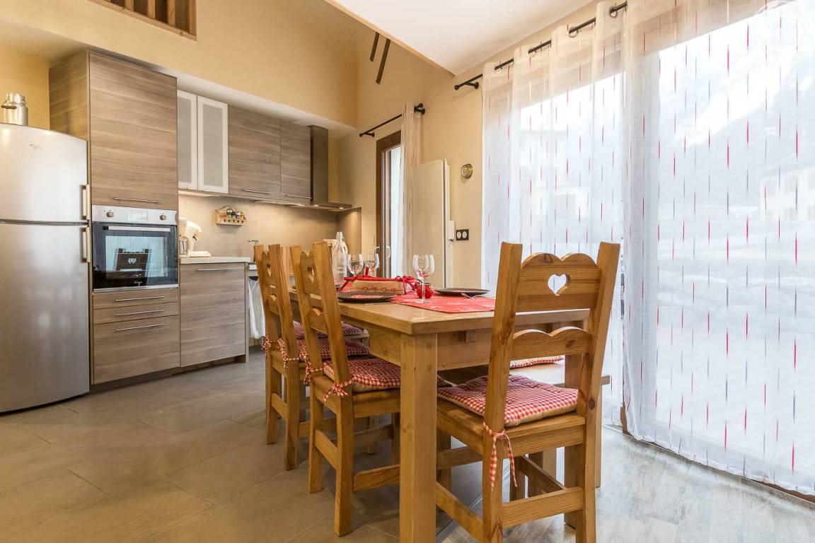 „Het is een heel mooi en zeer volledig huis. Mooie vide die veel ruimte geeft. 3 slaapkamers, 2 met een 2 persoons bed en 1 slaapkamer met 2 stapelbedden waar 4 personen kunnen slapen. 2 badkamers met toilet en 1 extra toilet. Goed uitgeruste keuken. Wasmachine, droger. Materiaal om fietsen, of in de winter de ski's te repareren. Minpunt: De bedden. Met name het 2 persoons bed in de slaapkamer beneden is slecht. De buitenruimte is een klein stenen plaatsje, met aan de straatkant een dichte hoge heg die privacy geeft. De andere kant geeft een mooi zicht op de bergen.“