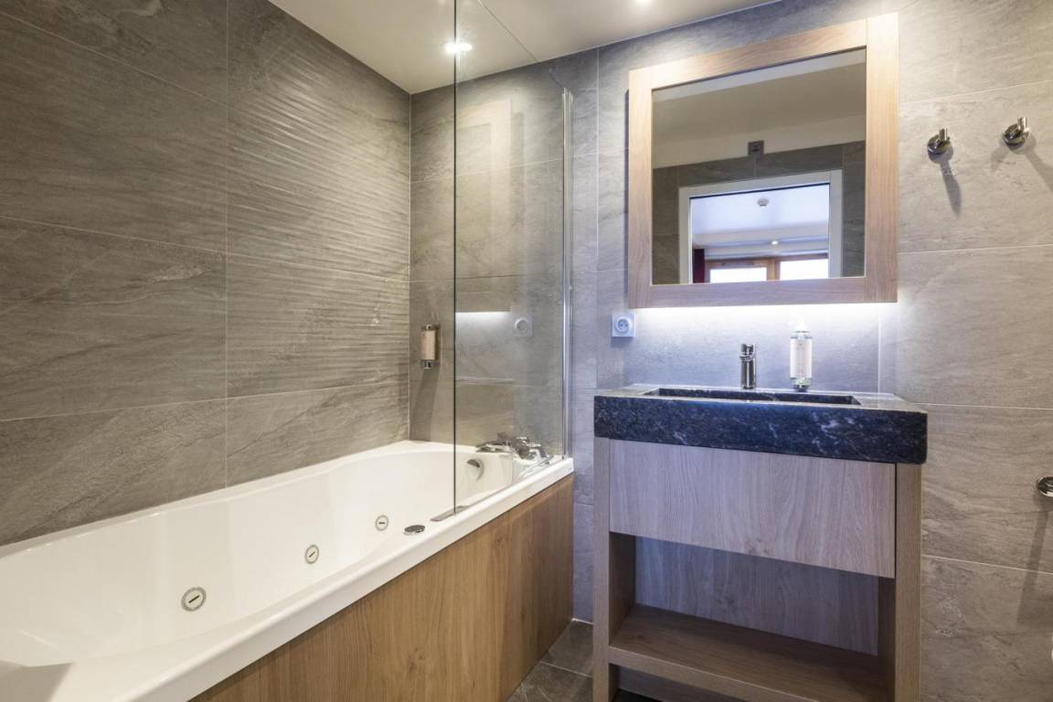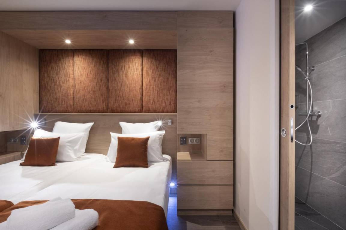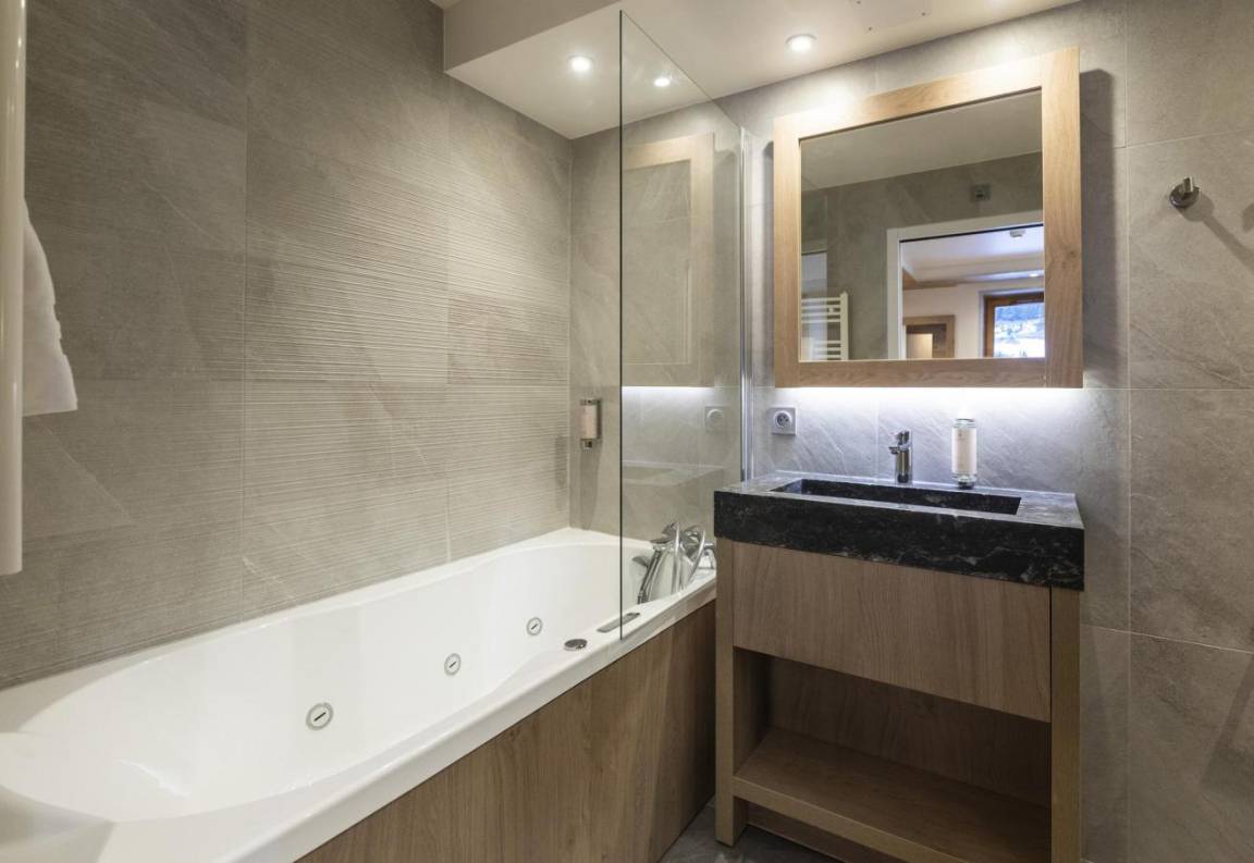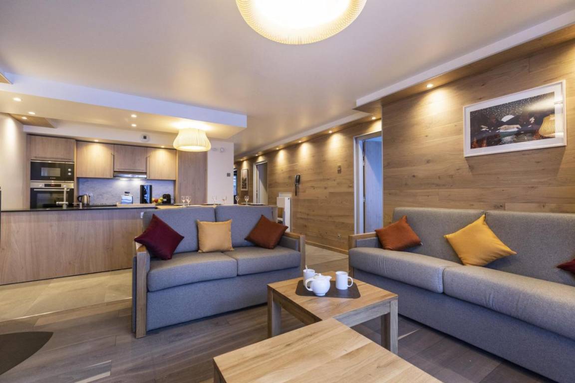 Fläche von ungefähr 93 m². Wohnzimmer mit Klappschlafcouch, Schwedenofen. Schlafzimmer mit Badewanne, Dusche, Doppelbett, WC. Schlafzimmer mit Badewanne, Dusche, 2 zwei Einzelbetten, WC. Schlafzimmer mit Dusche, 2 zwei Einzelbetten. Kochnische mit Fonduegerät, Raclettegerät, Wasserkocher, 2 Kaffeemaschinen (filtre et Nespresso Magimix), , Multifunktions-Backofen, Toaster, Geschirrspülmaschine, Mikrowellenherd, Induktionsherdplatten, Kühl-Gefrier-Kombination. Waschräume mit italienische Duschkabine. separates WC. Balkon.