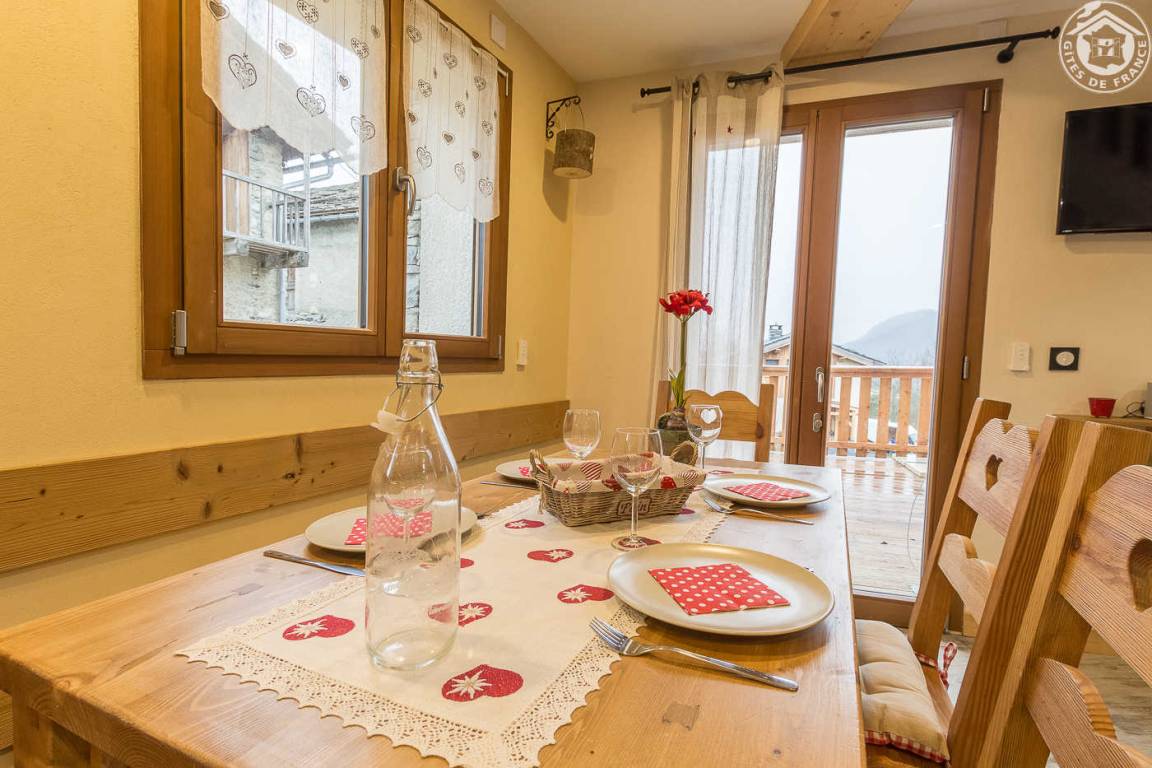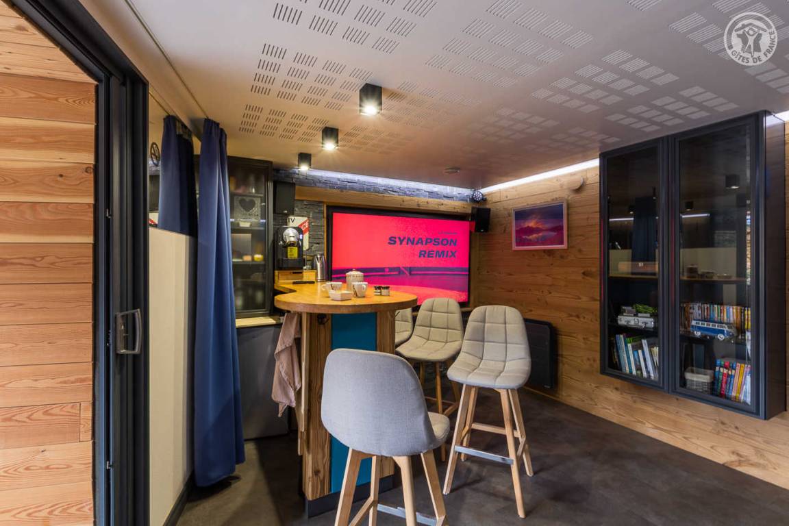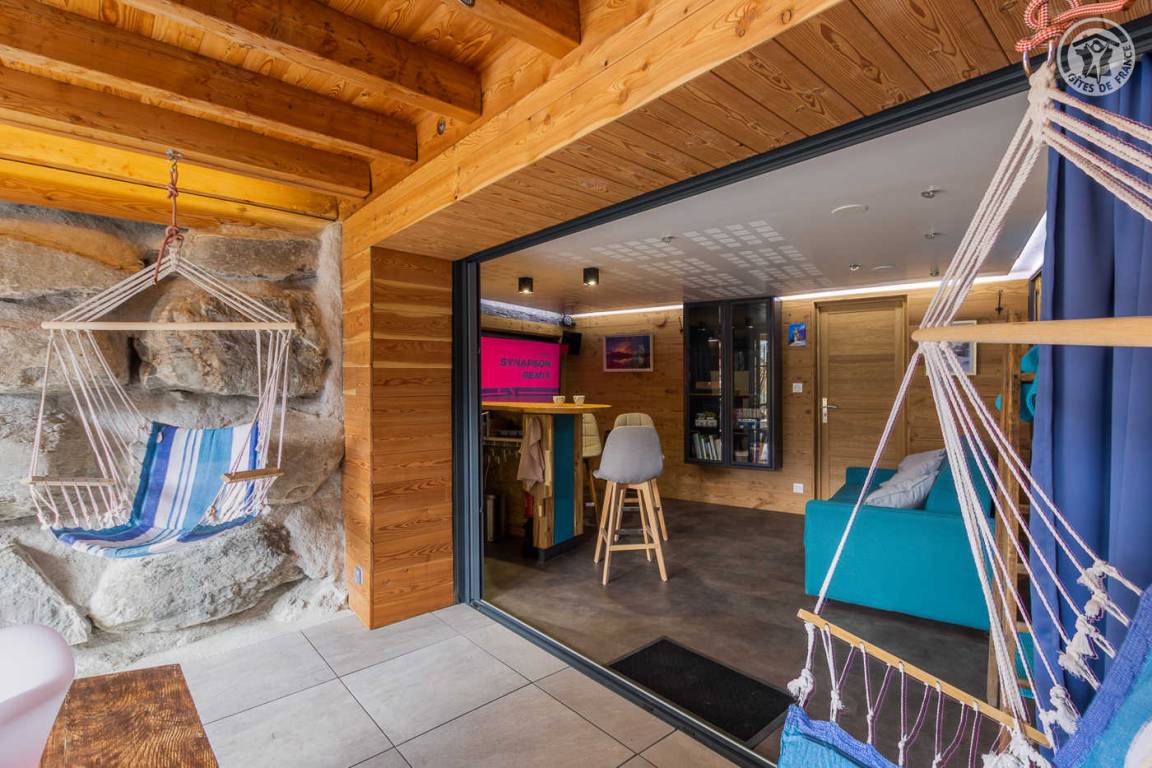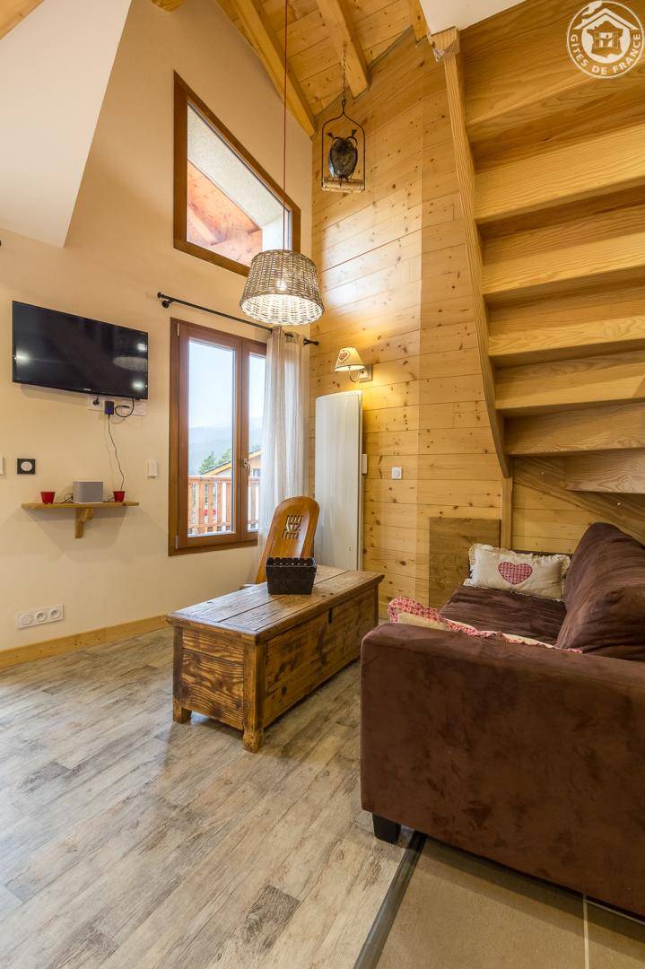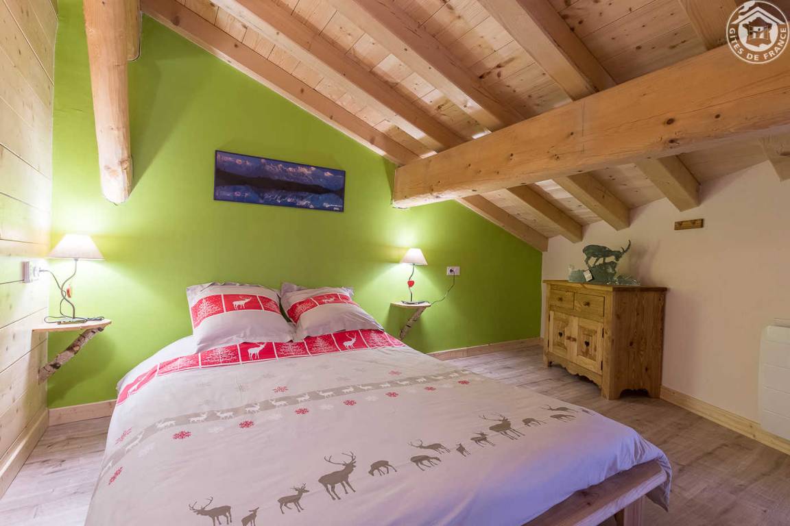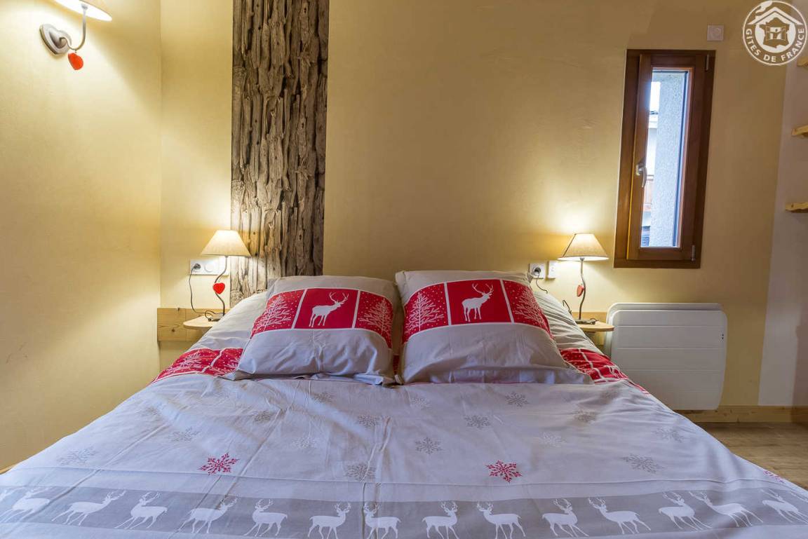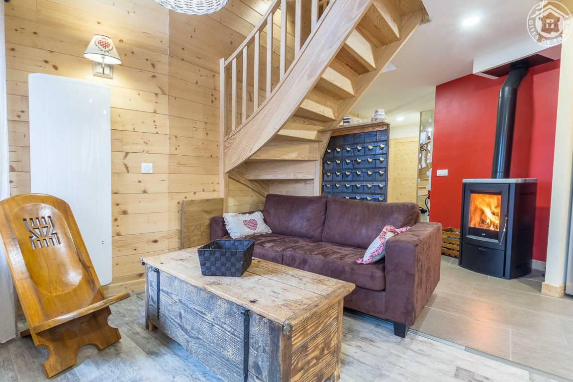 Gîte in einem Haus mit 1 weiteren Gîte für 8 Personen. Gemeinsamer Eingang. Erdgeschoss: Wohnküche mit Holzofen (Holz inklusive), 1 Schlafzimmer für 2 Personen (1 160 x 200 cm großes Bett). Badezimmer (Dusche + WC) zugänglich für Personen mit eingeschränkter Mobilität. Erster Stock: 2 Schlafzimmer (2 Etagenbetten / 1 Doppelbett). Duschraum (integriertes WC). Private Terrasse mit Blick auf das Tal. Waschmaschine und Trockner befinden sich im gemeinsamen Waschraum. Privater Skiraum + elektrischer Schuhtrockner. Fahrradkeller. Rodeln möglich. Gemeinsamer Wellnessbereich gegen Aufpreis und nach Reservierung mit Sauna, Bar, Heimkino und ausgestatteter überdachter Terrasse (kontaktieren Sie die Eigentümer). Ladesteckdose für Elektrofahrzeuge (Laden). Vermietung Sonntag – Sonntag in der Hochwintersaison.