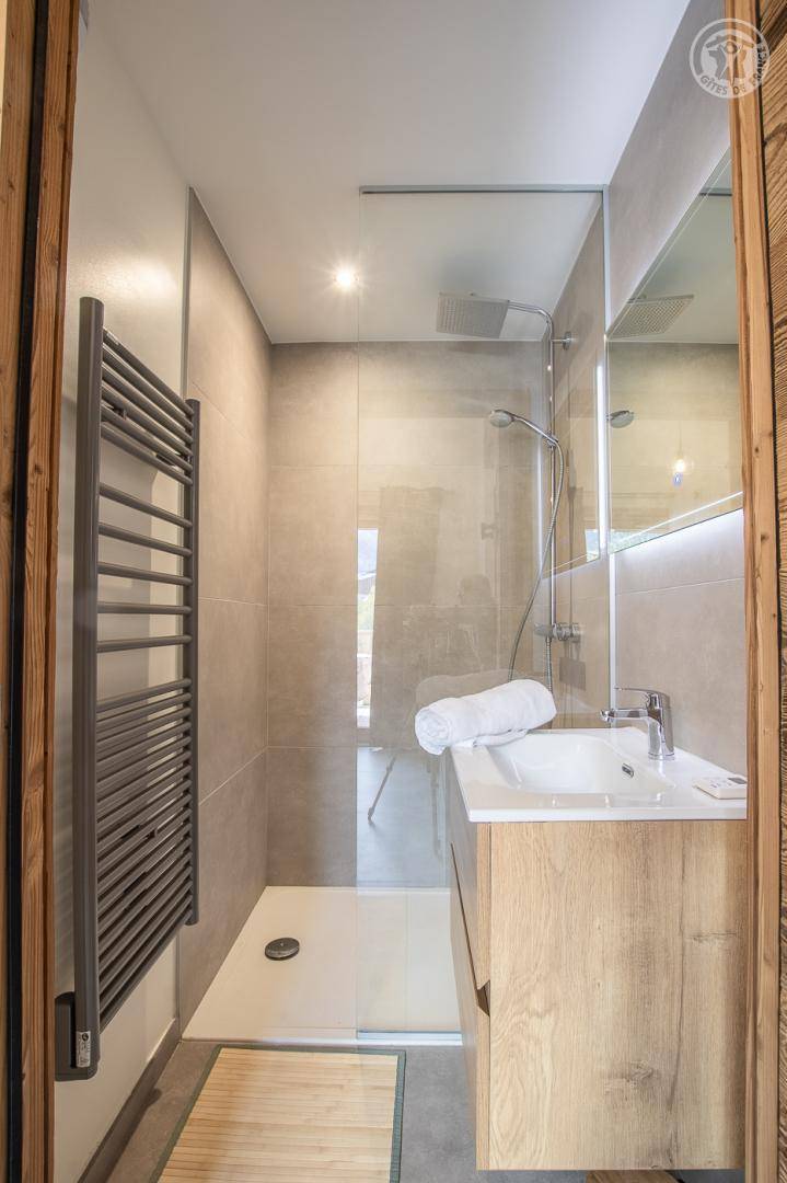 Am Eingang des Weilers Les Grands Champs liegt die Residenz mit 5 Apartments 300 m von den Skiliften und 2 km von Geschäften, Läden und Dienstleistungen entfernt. Im Winter erleichtert die 100 m entfernte Shuttle-Haltestelle Ihre Fahrten zwischen Lanslebourg und Lanslevillard. Der Eingang zur Residenz bietet einen schönen Platz für private Skiräume, ausgestattet mit einem Schuhtrockner. Vor dem Haus sind einige Parkplätze mit einer gemeinsamen Elektroladestation im Außenbereich möglich. 50 m vom Haus entfernt gibt es einen großen kostenlosen öffentlichen Parkplatz, auf dem Sie problemlos parken können.