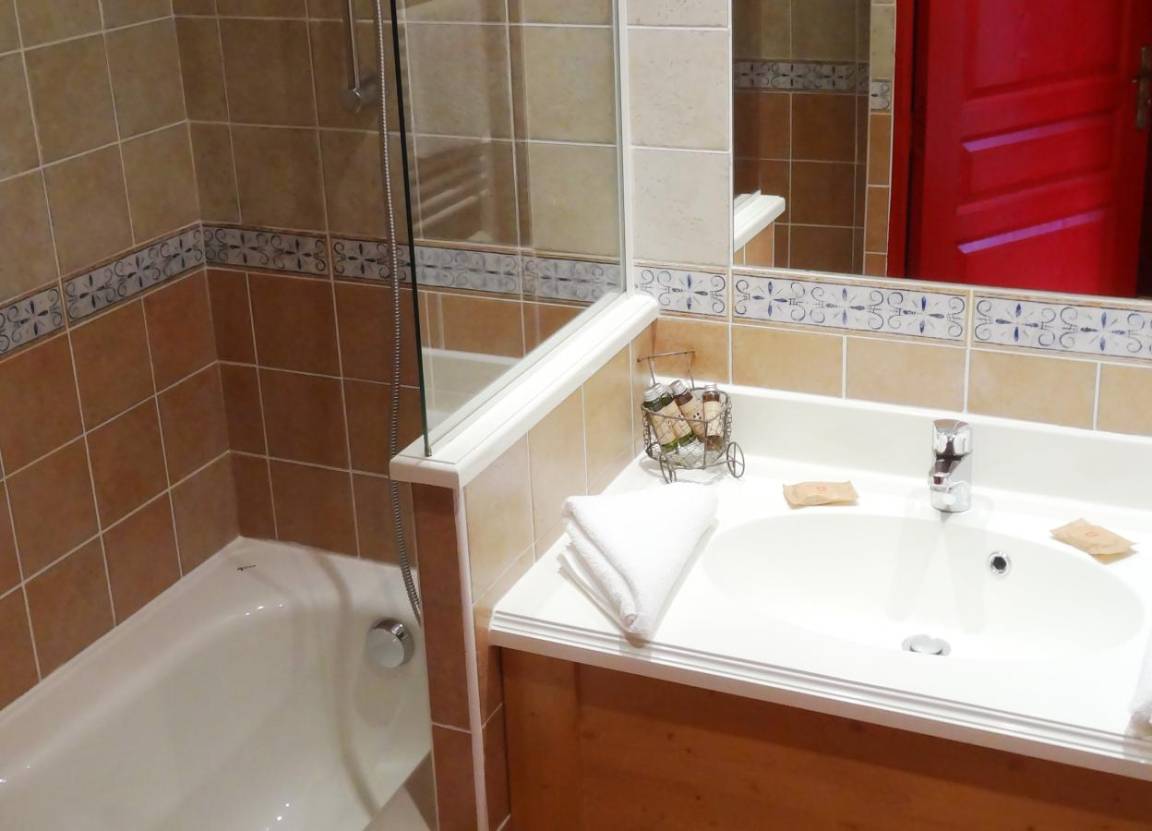 Fläche von ungefähr 55 m². Wohnzimmer mit Ausziehschlafcouch für 2 Personen (2 couchages individuels). Schlafzimmer mit Doppelbett (160). Schlafzimmer mit Doppelbett oder 2 Einzelbetten. offener Schlafbereich mit 2 Stockbetten. Kochnische mit Wasserkocher, Kaffeemaschine, Backofen, Mikrowellengrill, Toaster, Geschirrspülmaschine, 4 Glaskeramikkochfelder, Kühlschrank. Badezimmer mit Badewanne. separates WC. Waschräume. Balkon ODER Terrasse. Die oberen Betten sind nicht für Kinder unter 6 Jahren geeignet.