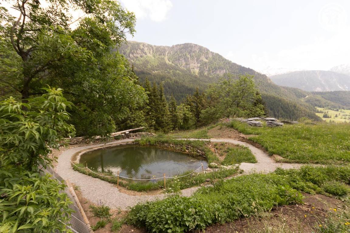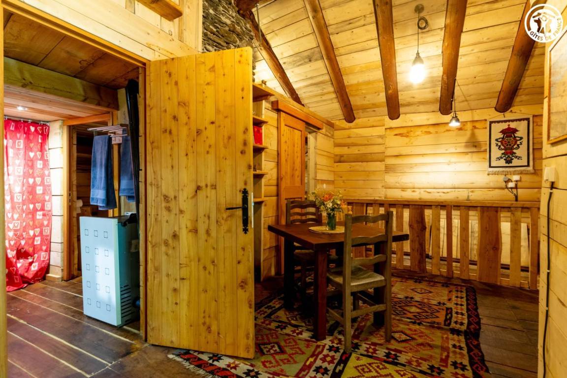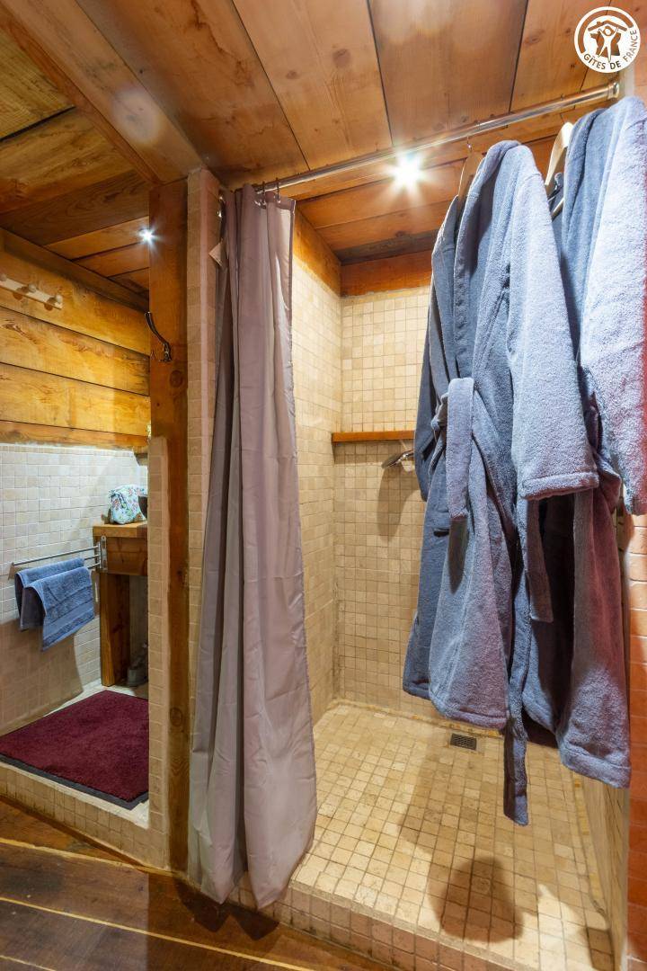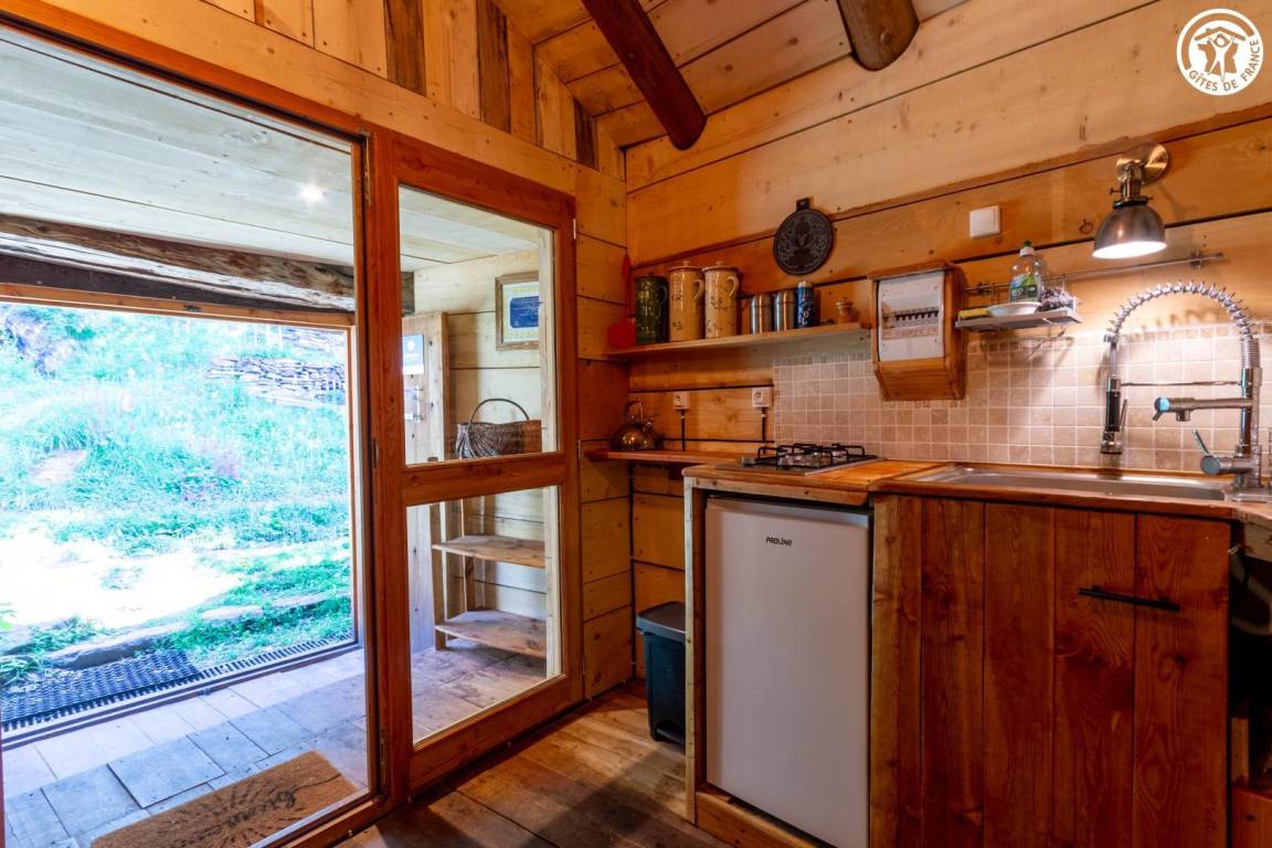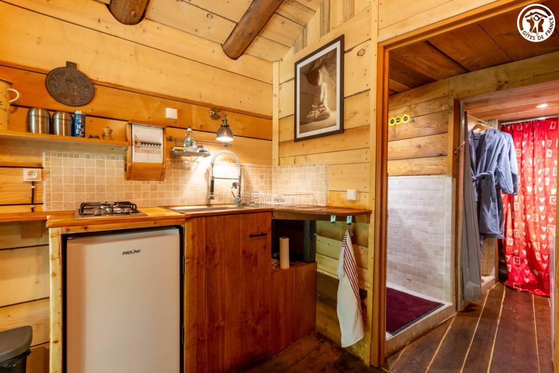 Freistehendes Chalet auf 2 Ebenen am Berghang (nicht empfohlen für Kinder unter 16 Jahren) mit Gartenebene: Wohnküche mit Sitzecke, Doppelbett (160 x 200 cm) auf Podest, Badezimmer (ebenerdige Dusche mit Duschkopf und Handbrause), Trockentoilette. 1. Stock (oder Erdgeschoss bei Zugang von außen über den Weg): Essbereich mit Pelletofen und Küchenbereich, ideal zum Frühstücken (ausgestattet mit kleinem Kühlschrank, 2 Gasbrennern), Schlafzimmer (1 Doppelbett 160 x 200 cm), Badezimmer (Dusche und geschlossene Toilette). Bettwäsche und Handtücher sind inklusive, die Betten sind bei der Ankunft bezogen. Unabhängige und schattige Holzterrasse, nicht an das Chalet angrenzend. Gartenmöbel. Schwimmen (von Juni bis September je nach Wetterlage) in einem sonnenbeheizten Pool mit Pflanzenfilterung (Seerosen und Schilf), 2 m tief.
