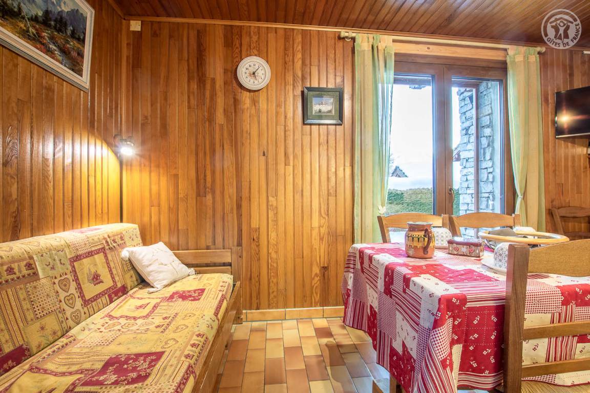 Ferienhaus im Haus der Eigentümer. Unabhängiger Zugang zum Erdgeschoss: Wohnzimmer-Küche, kostenloses WLAN, 1 Schlafzimmer (1 Doppelbett 160 x 200 cm + 2 Etagenbetten), Duschbad (ebenerdige Dusche) und separates WC. Bettwäsche inbegriffen und Bett nur für 2 Personen ausgelegt. Terrasse + Garten. Skigebiet Val Cenis Vanoise auf 200m. Schwimmbad auf 200m. Gewässer in 8 km.