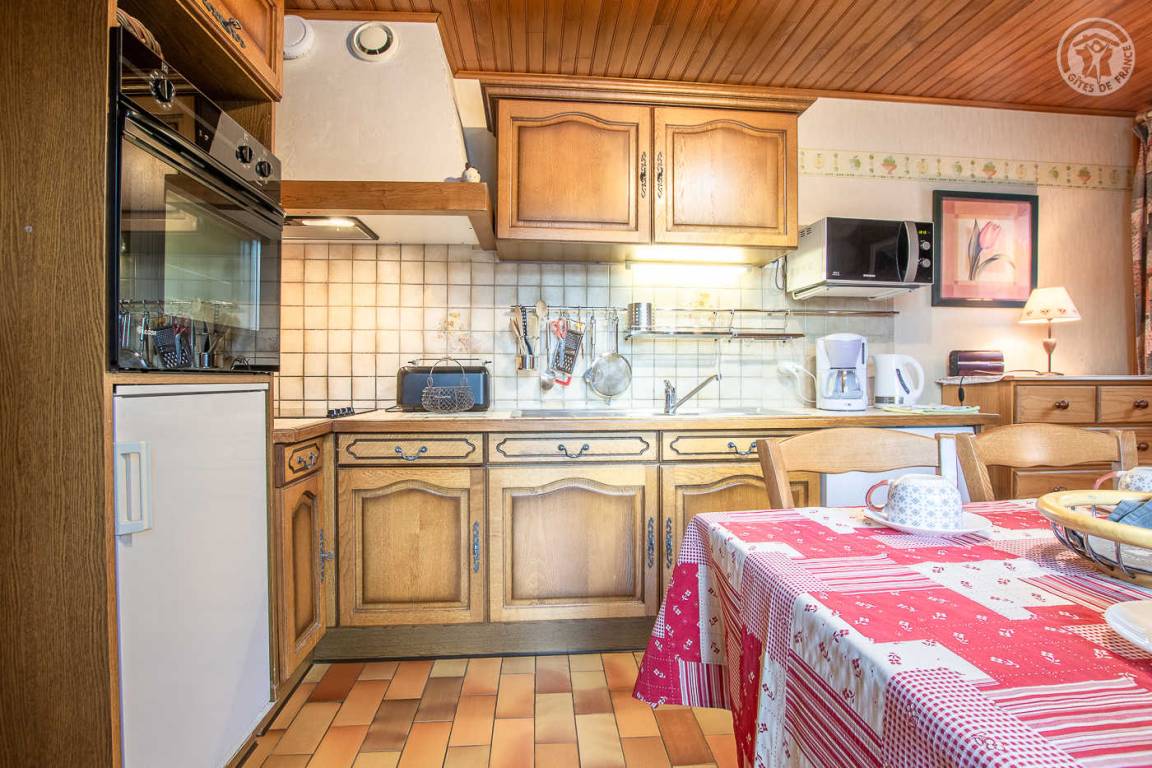 „Malgré que le gîte soit bien équipé, il reste petit pour 4 personnes. les 2 lits superposés sont dans la même chambre que le lit double … malgré un rideau qui peut séparer ceux-ci. Sinon la location est très propre et les propriétaires très sympathiques qui habitent au dessus reste calme en journée (on les un tout petit peu le matin à 7h mais c’est léger) .“