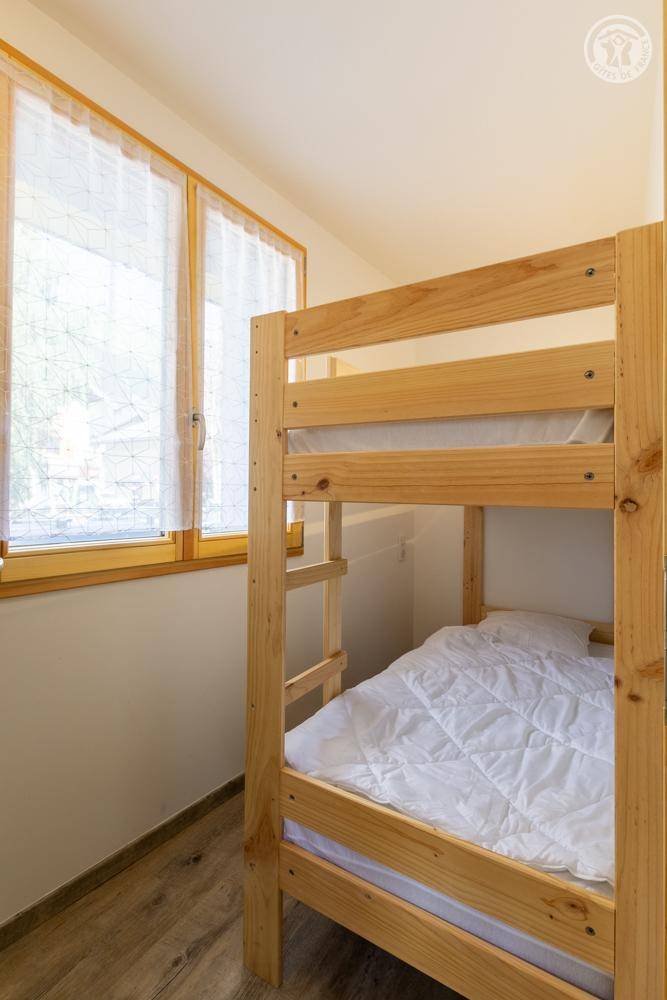 Wohnung im Erdgeschoss eines Dorfhauses inklusive einer zweiten unbewohnten Unterkunft. Eingangshalle. Wohnzimmer – Aufenthaltsraum – Küche (1 Schlafsofa 90x190 cm), 1 Schlafzimmer (1 Doppelbett 160x190 cm), 1 Bergecke (2 Einzel-Etagenbetten 80x200 cm), separates WC, Badezimmer (Dusche). Öffentliche Parkplätze vor der Hütte. Bettwäsche und Handtücher werden nicht gestellt.