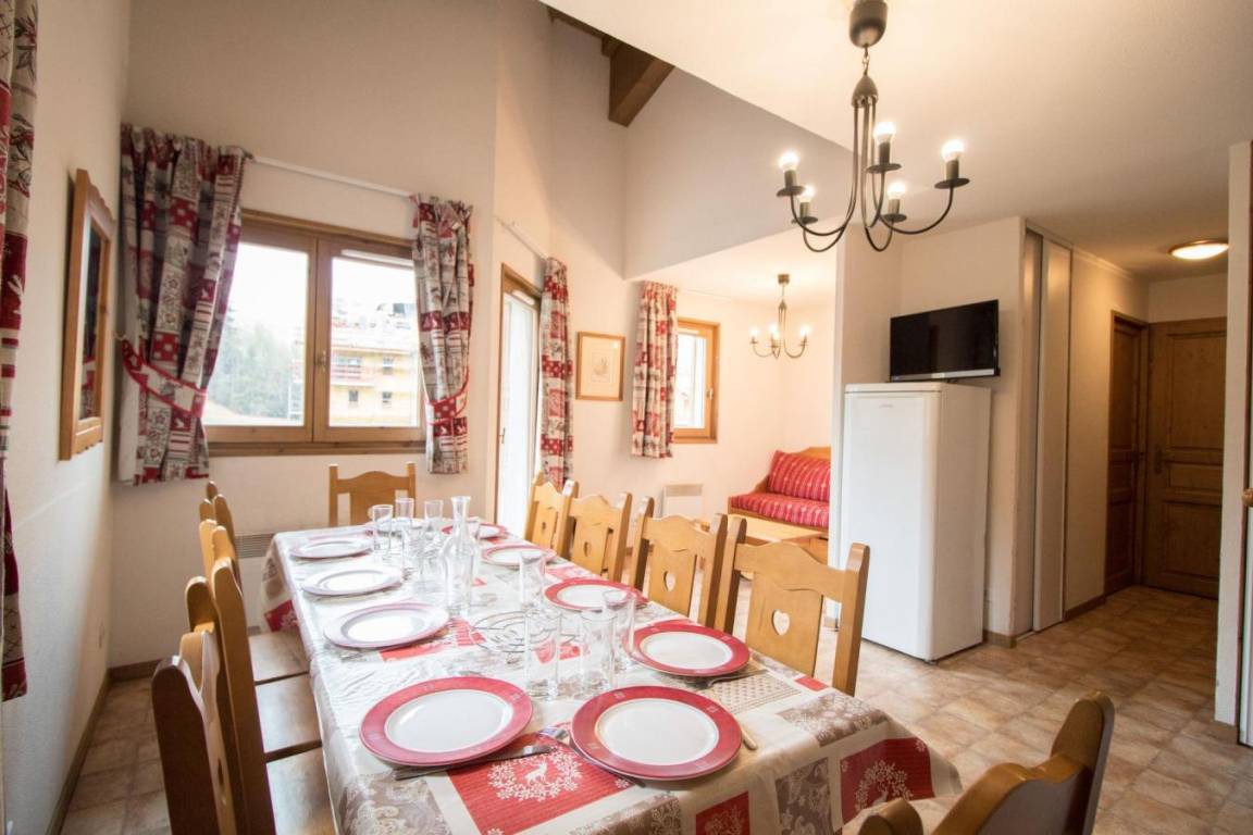 Die Residenz Le Bonheur des Pistes*** besteht aus zwei Chalets, die aus traditionellen Materialien, Stein und Holz, mit einem Dach aus Steinplatten aus der Region gebaut wurden, wodurch sie sich perfekt in die unberührte Alpenlandschaft des Val Cenis einfügt. Sie bietet einen wirklich herrlichen Panoramablick auf das Vanoise-Gebirge, einschließlich seines höchsten Gipfels: der Dent Parachée (der gezackte Zahn). Die Residenz bietet Ihnen 70 voll ausgestattete und komfortable Apartments auf 4 Etagen (mit Aufzügen). Alle Apartments sind gemütlich mit Kiefernmöbeln im Bergstil eingerichtet und verfügen über einen Fernseher, eine Küche mit Mikrowelle/Grill, Geschirrspüler, 4 Elektrokochplatten und einen Balkon. Fläche von ungefähr 65 m². 2te Etage. Orientierung : Ost, Süd. Blick skipisten. Niveau 0 : Wohnzimmer mit Ausziehschlafcouch für 2 Personen. Schlafzimmer mit Doppelbett. Kochnische mit Kaffeemaschine, Mikrowellengrill, Geschirrspülmaschine, 4 elektronische Herdplatten, Kühlschrank. Badezimmer mit Badewanne, Waschbecken. separates WC. Balkon. Niveau 1 : Schlafzimmer mit 2 Einzelbetten. Schlafzimmer mit 2 Stockbetten. Zwischengeschoss mit 2 Ausziehbetten. Badezimmer mit Badewanne, Waschbecken. separates WC. Die oberen Betten sind nicht für Kinder unter 6 Jahren geeignet.
