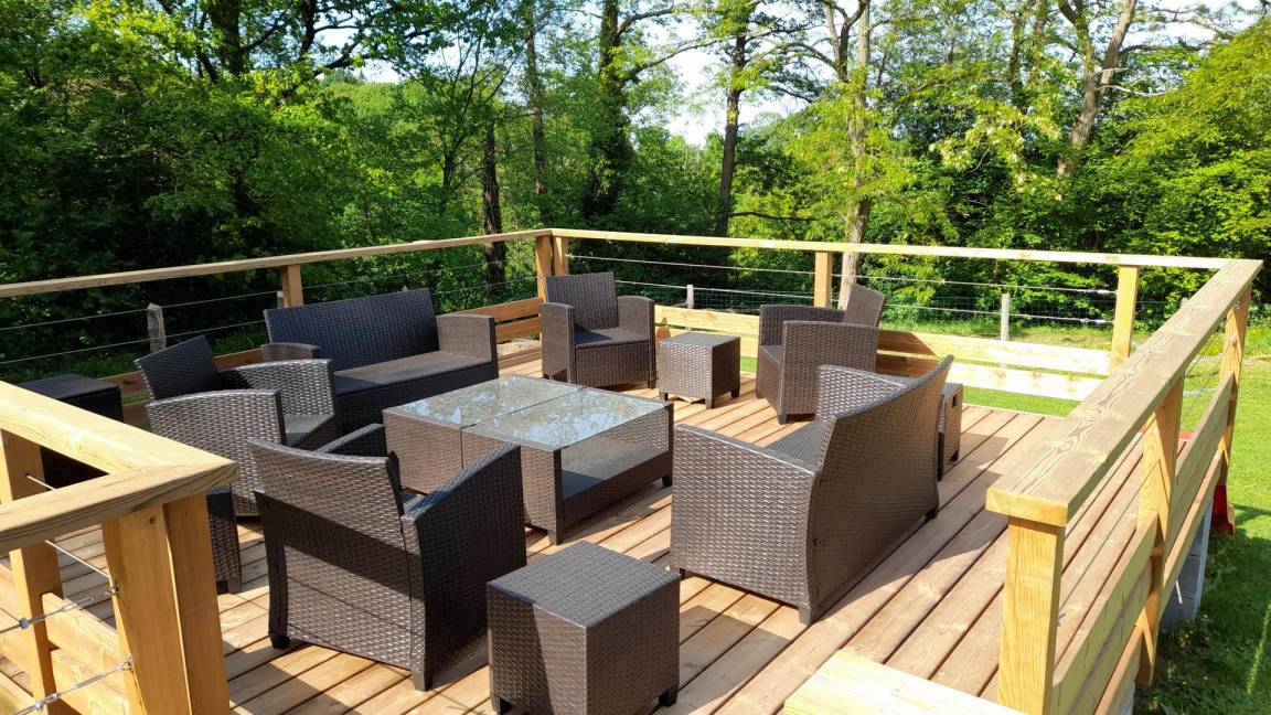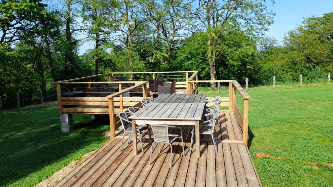 - eine Terrasse mit Gartenmöbeln, Grill und Liegestühlen (verfügbar ab Ende Frühling 2025)