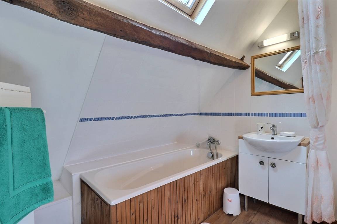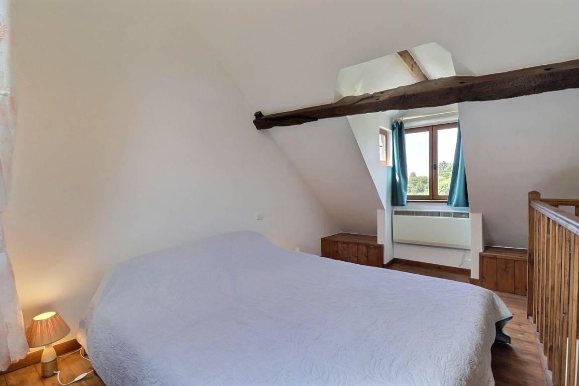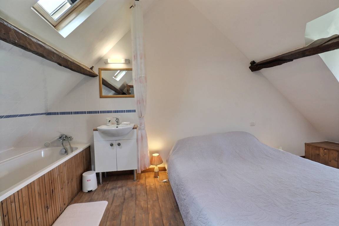 Im Erdgeschoss: ein Wohnzimmer mit Küche und Ruhebereich. Oben: ein Schlafzimmer im Zwischengeschoss mit einem 160X200 Bett und angrenzendem Badezimmer, eine separate Toilette. Parken auf dem Grundstück.