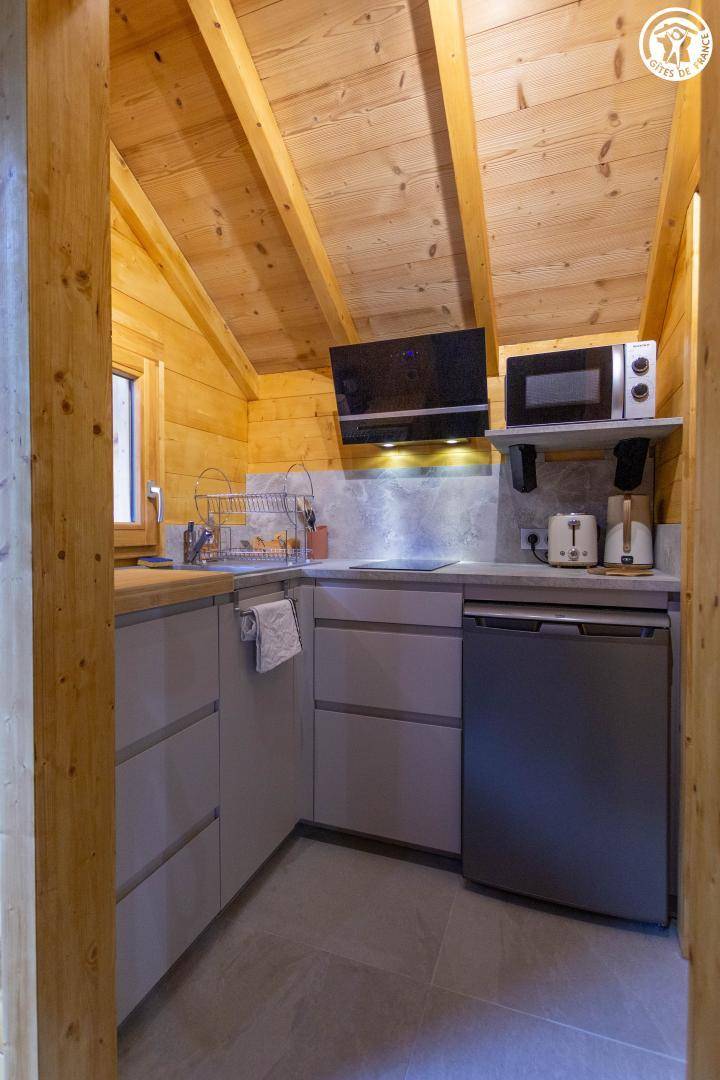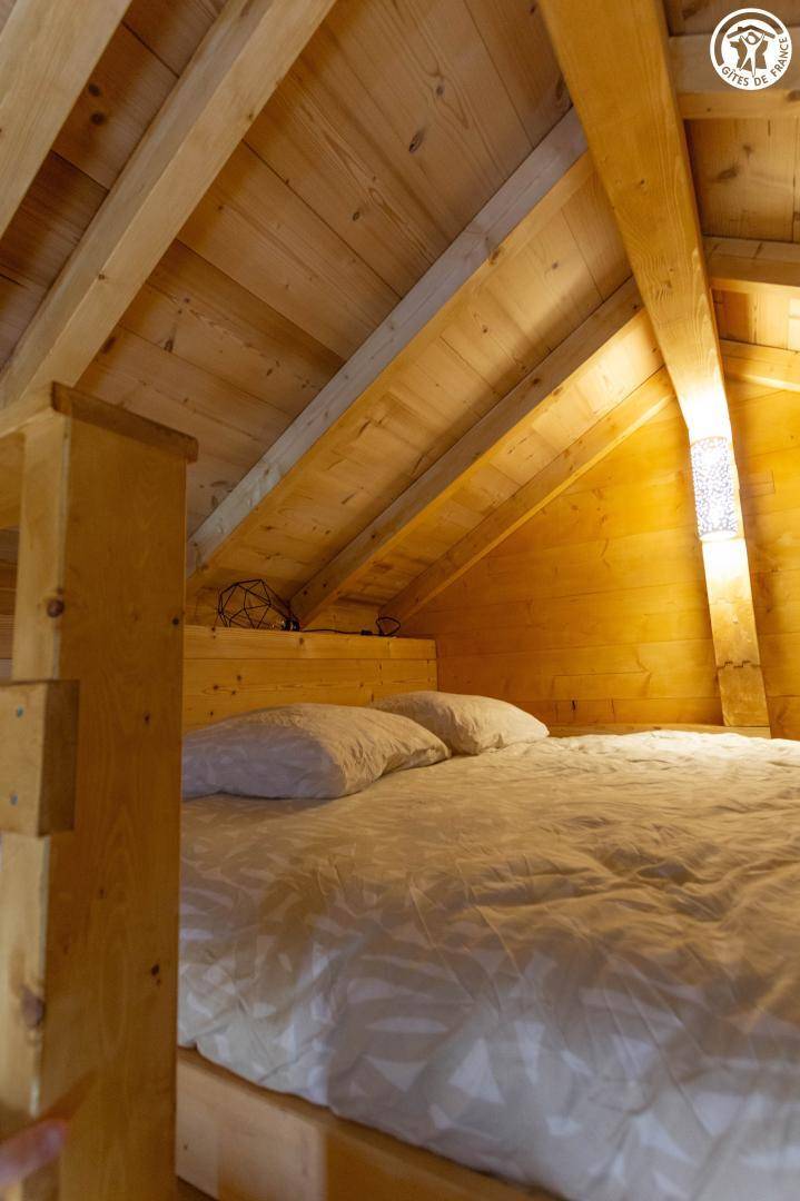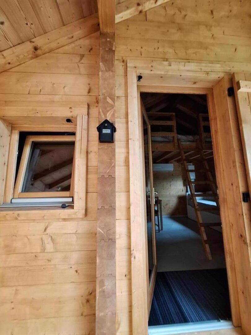 Chalet mit Zugang über wenige Stufen unterhalb des Parkplatzes. Erdgeschoss: Wohnküche (1 Schlafsofa 160x200 cm), Badezimmer mit WC (Dusche). Zwischengeschoss über eine Leiter erreichbar (1 Doppelbett 160x200 cm). Überdachte Terrasse. Fahrrad- und Skiraum. Nordisches Bad gegen Aufpreis von 50 €.