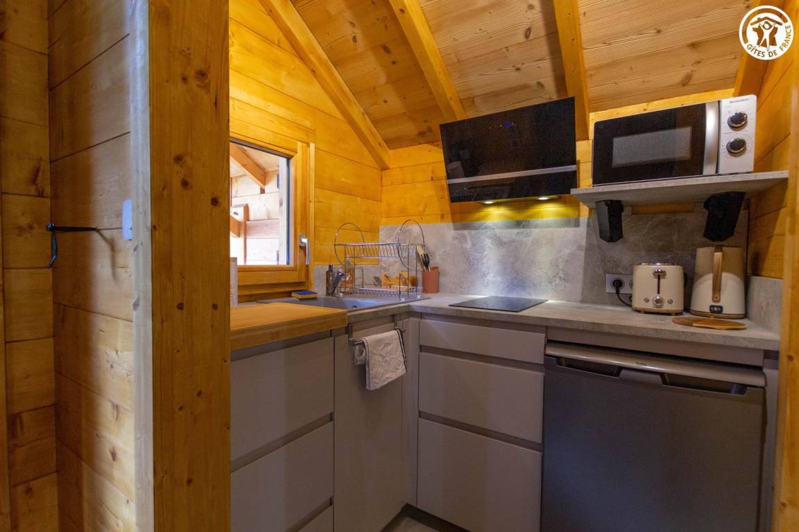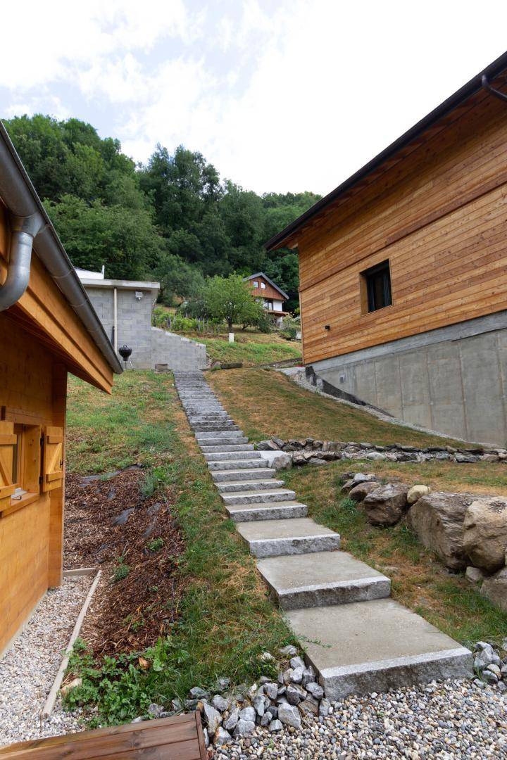 Modernes Chalet für zwei Personen, ideal gelegen mit Wanderwegen, die direkt vom Cottage aus beginnen. Südterrasse mit freiem Blick und nordischem Whirlpool mit Blick auf die Berge für einen erholsamen Aufenthalt inmitten der Natur.