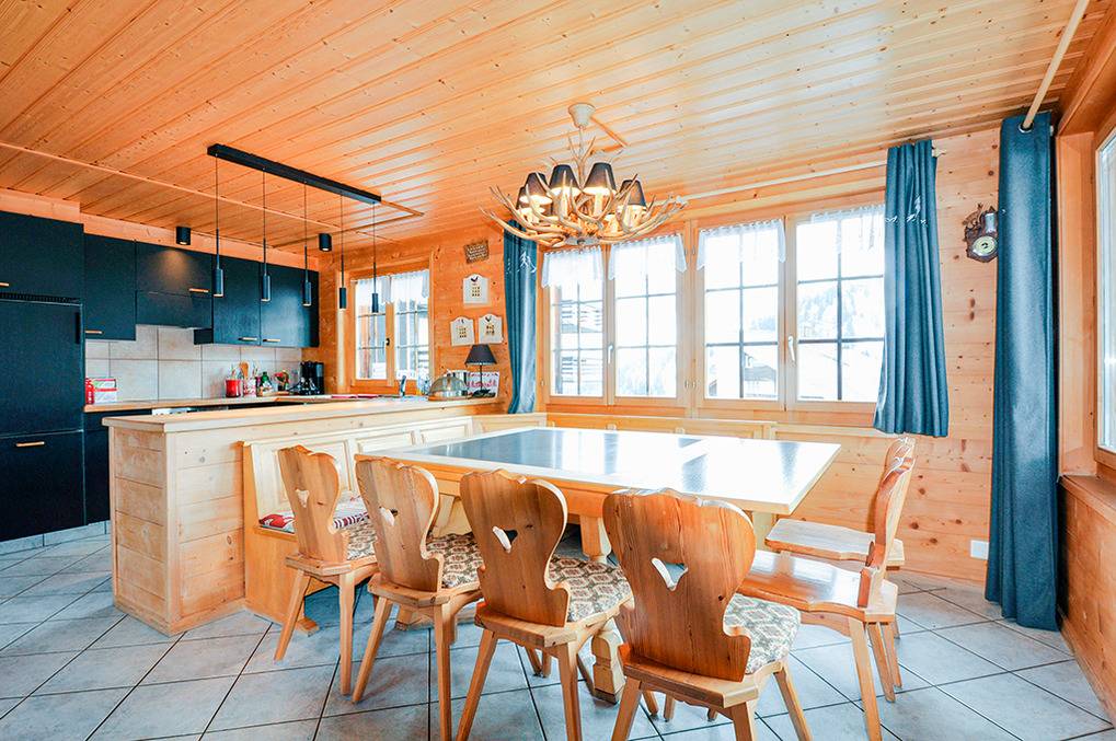 Haus: Sehr schönes Chalet mit Sauna. 8-Zimmer-Haus mit 170 qm Wohnfläche über 3 Etagen. 7 Schlafräume, 3 Bäder. Rustikal-gemütliches Ambiente durch Holzvertäfelung und Holzbalkendecken. Internet kostenlos über W-Lan. Sauna im Haus (Nutzung auf Wunsch, geringe Gebühr). Öl-Zentralheizung. Große, teils überdachte Sonnenterrasse (Sitzmöbel). Garage. Hinweis: trotz 12 ausgewiesener Betten ist das Chalet nur mit bis zu 10 Personen buchbar.