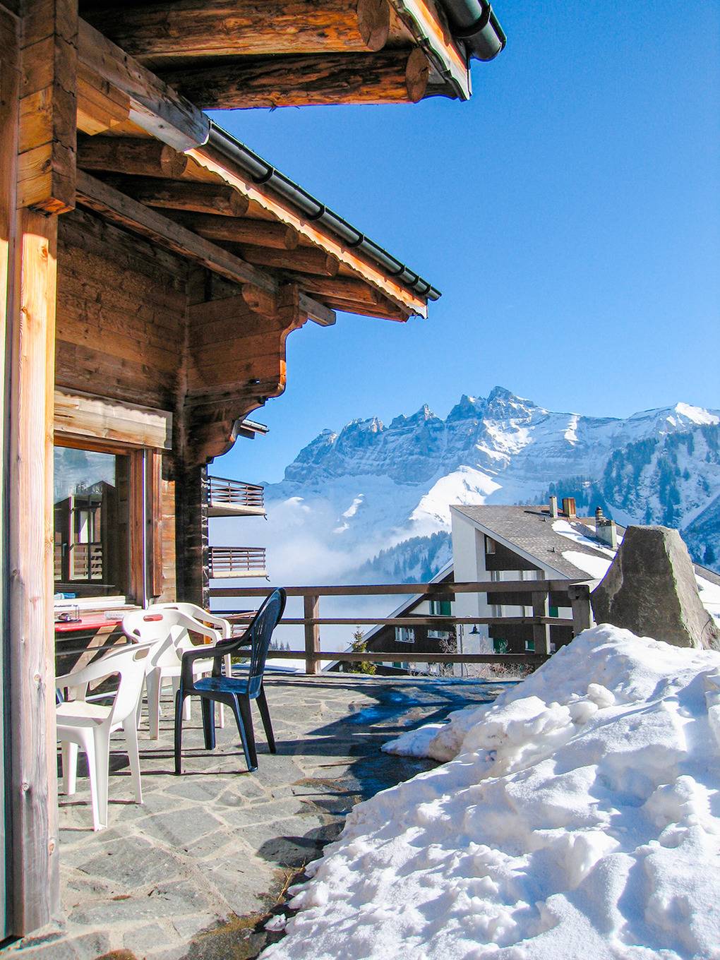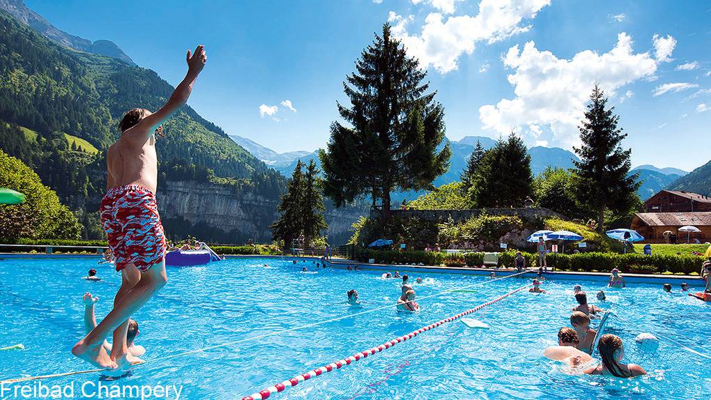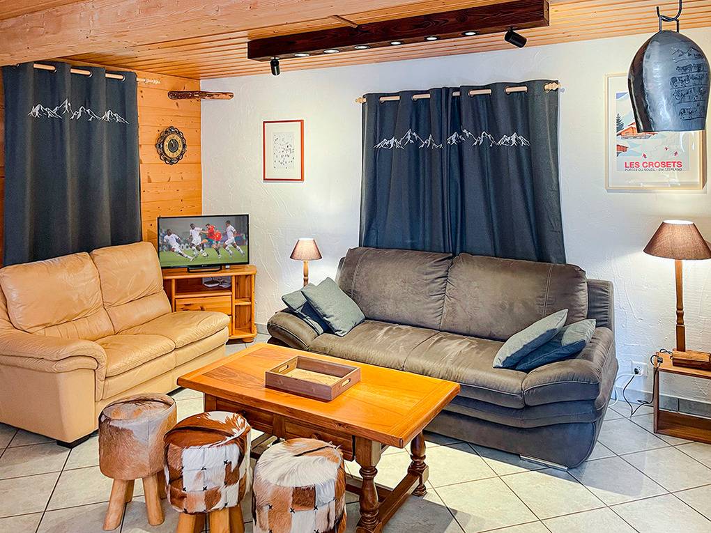 Ort: Les Crosets, oberhalb von Val d'Illiez. Ruhige Hanglage etwas oberhalb des Ortes mit herrlichem Blick auf die Berggruppe "Dents du Midi". Idealer Ausgangspunkt für Bergwanderungen. Einkaufen 200 m. Sessellifte (Sommerbetrieb) 350 m. Sportzentrum Champéry mit Hallenbad, Kletterwand 8,6 km.