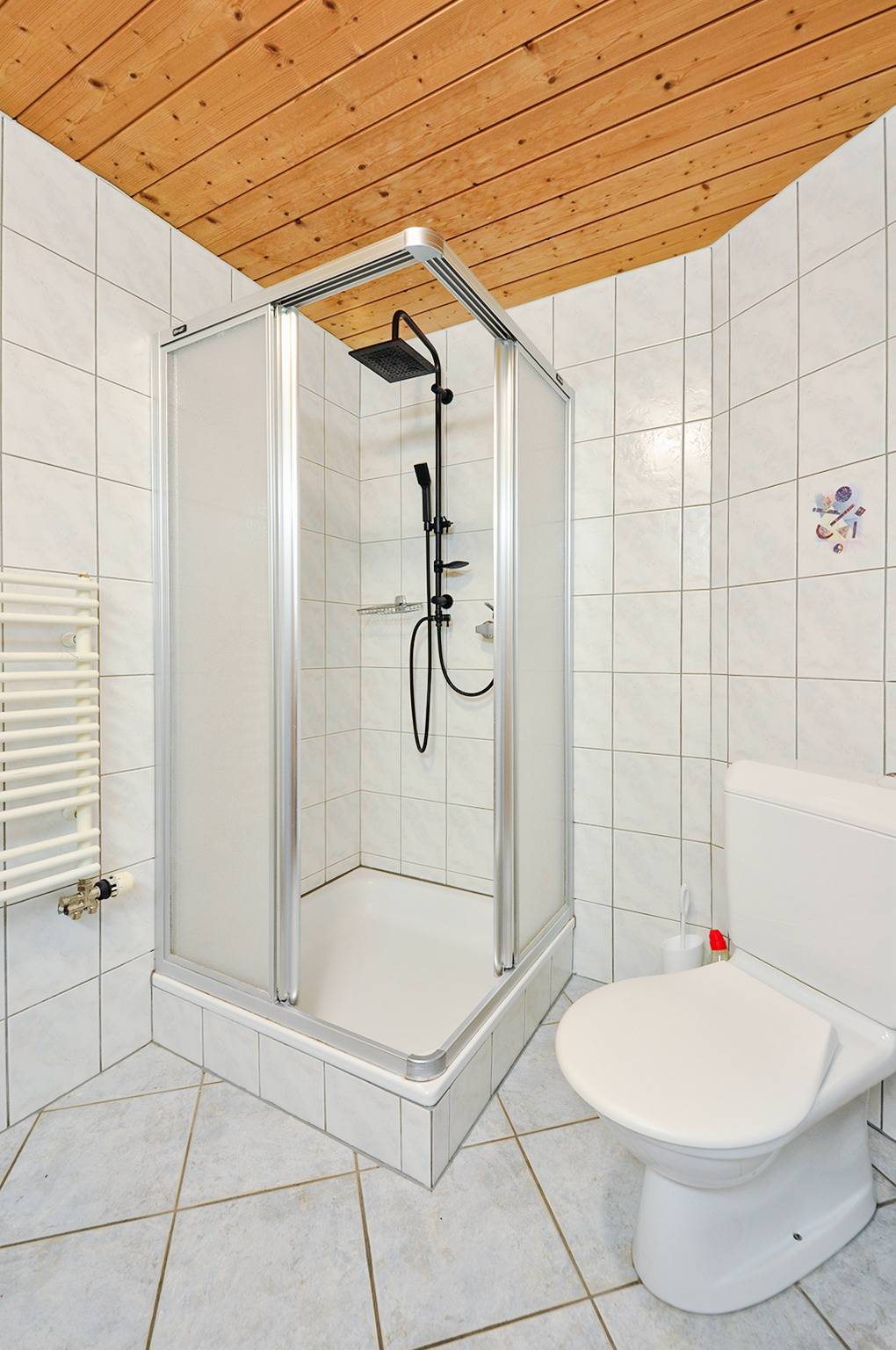 Dachgeschoss mit Schrägen: Zwei 1-Bettzimmer. Zwei Doppelzimmer. Bad: Bw, Wb, WC.