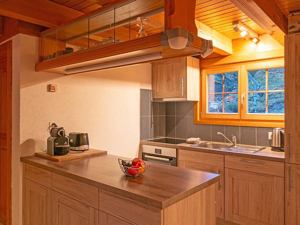 Haus: Sehr schönes Chalet mit gepflegter Einrichtung. 3 1/2-Zimmerhaus, ca. 90 qm Wohnfläche über 2 1/2 Etagen. E-Heizung. Warmwasser über 120 l E-Boiler. Sitzmöglichkeiten vorm Haus (Sonnenschirm, Gartenmöbel). Ein reservierter Pkw-Stellplatz im Parkhaus (200 m).
